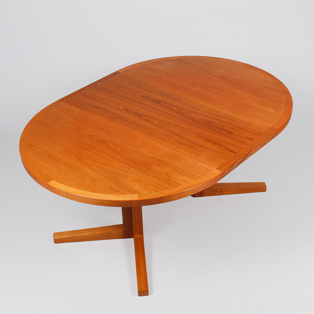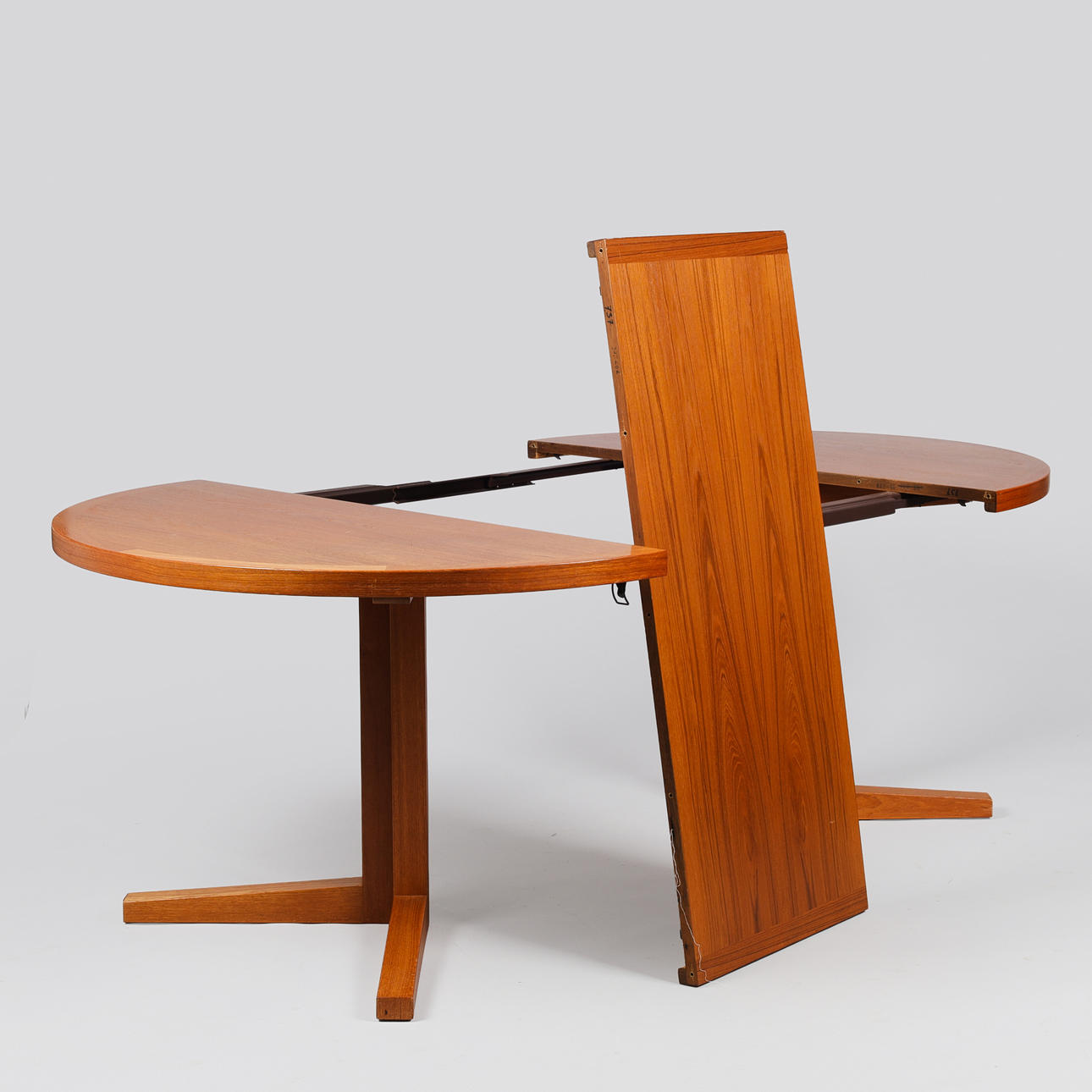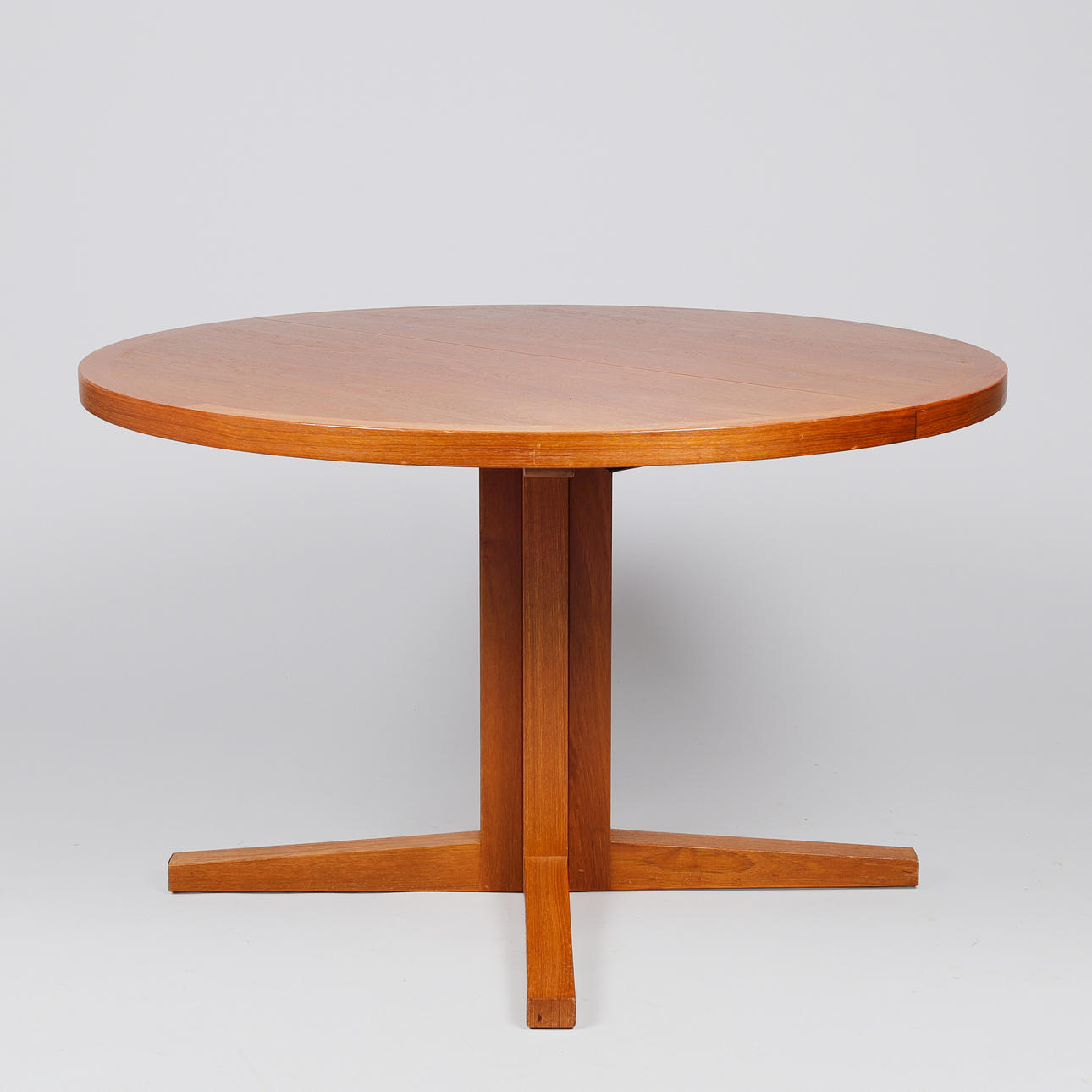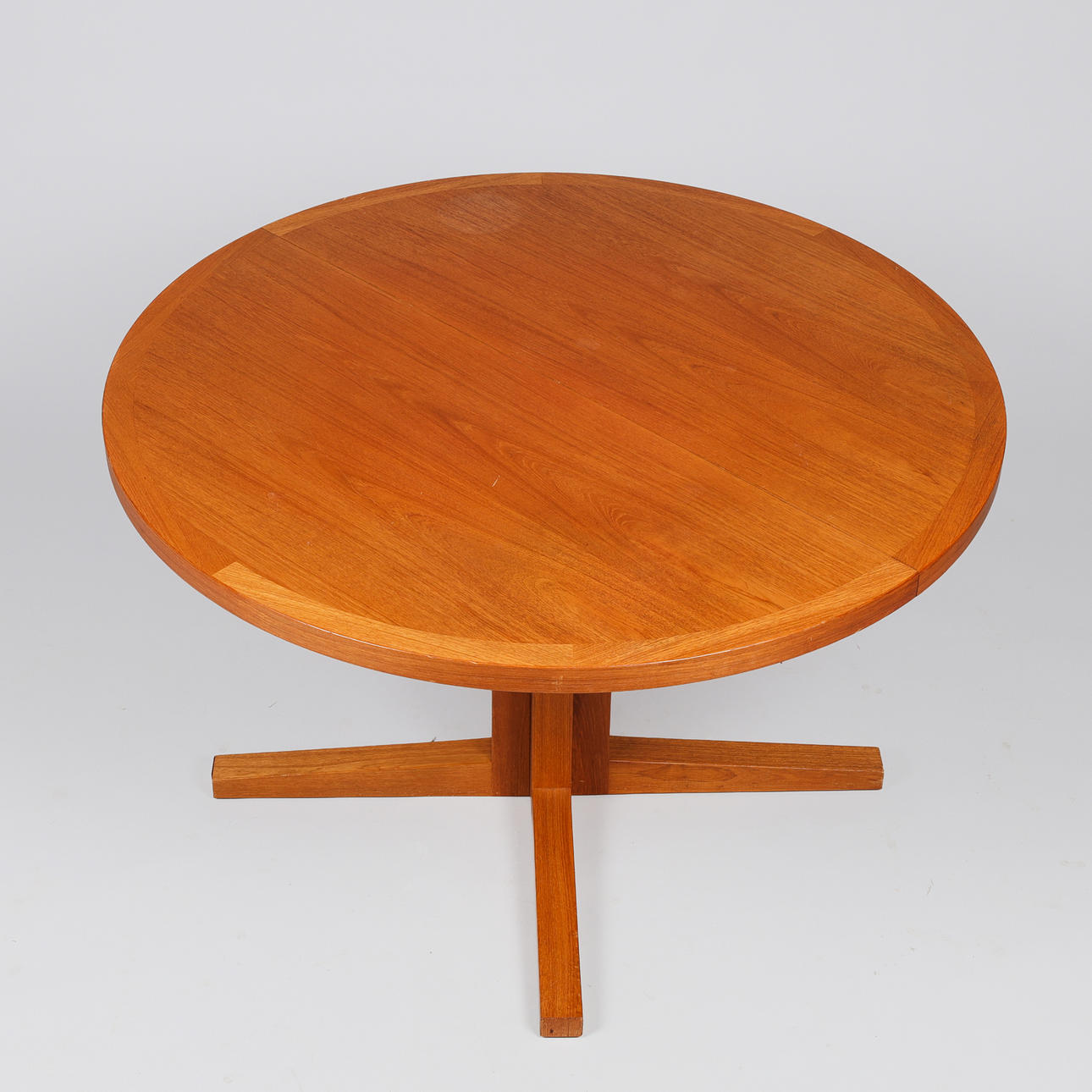 4958289. JOHN MORTENSEN. Circular teak dining table with one additional plate, Heltborg Møbler, Denmark, 1960s, (1+1).