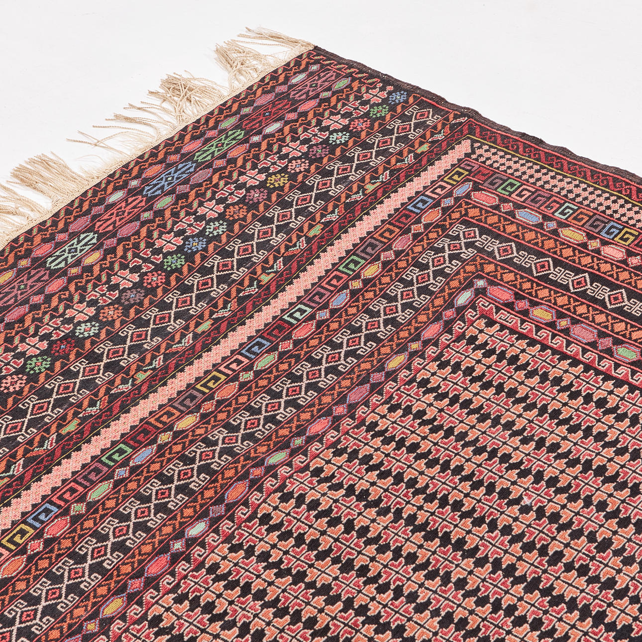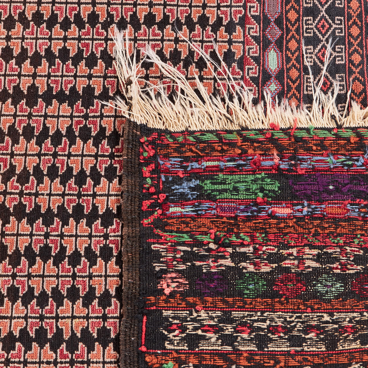 CARPET, soumak, wool on cotton yarn.