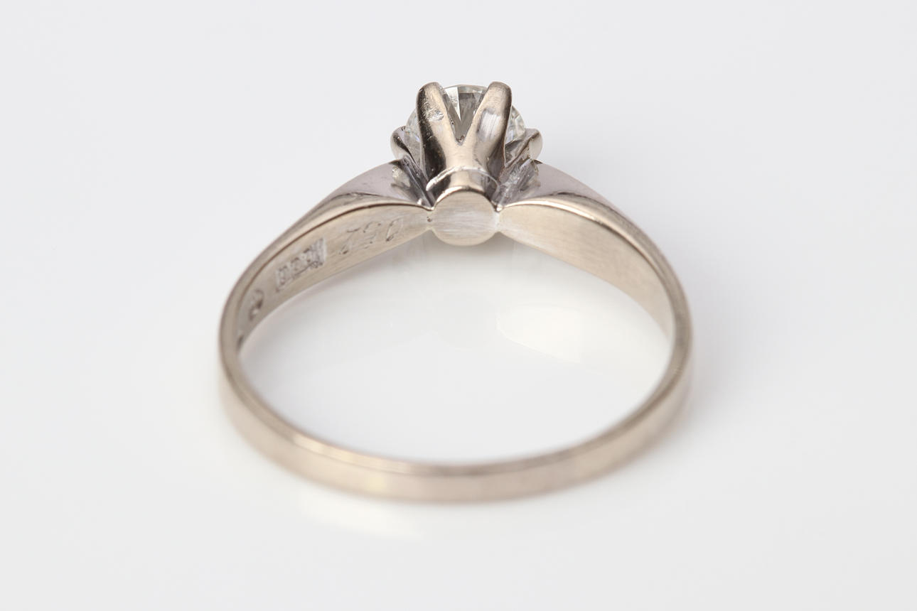 Ring in white gold 18k with a brilliant cut diamond approx 0,52 carat, TW (F-G), PVS, size. ca 17,5 mm, total weight 3,2 g.