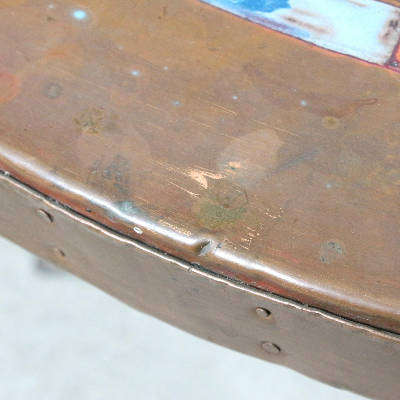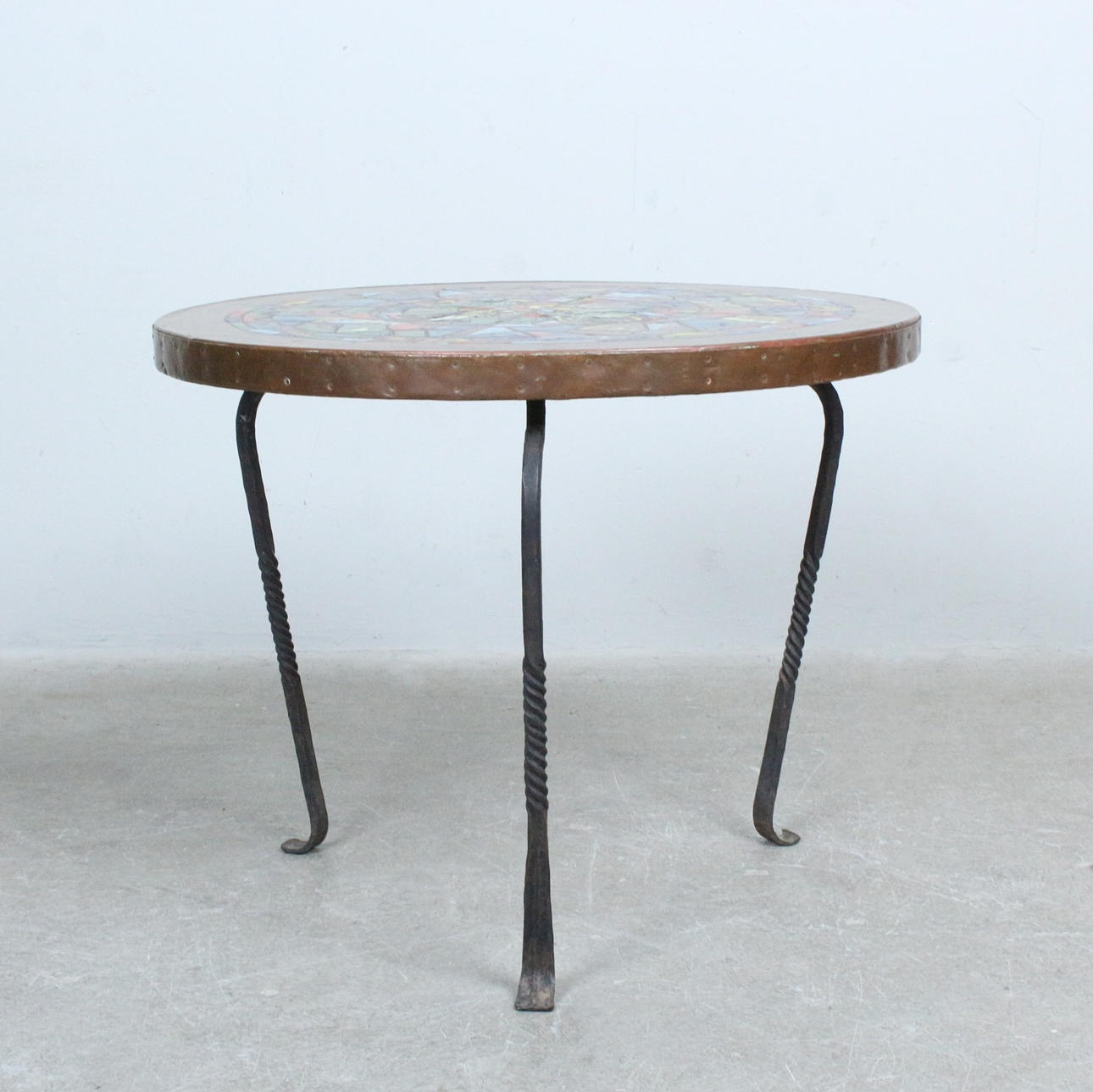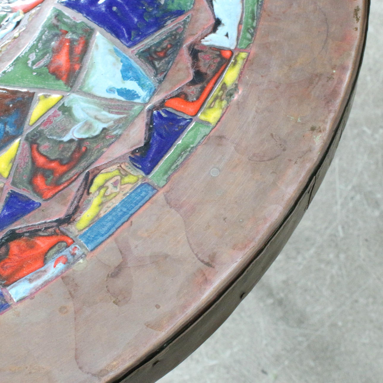 Coffee table/coffee table with artistic copper enamel inlay.
