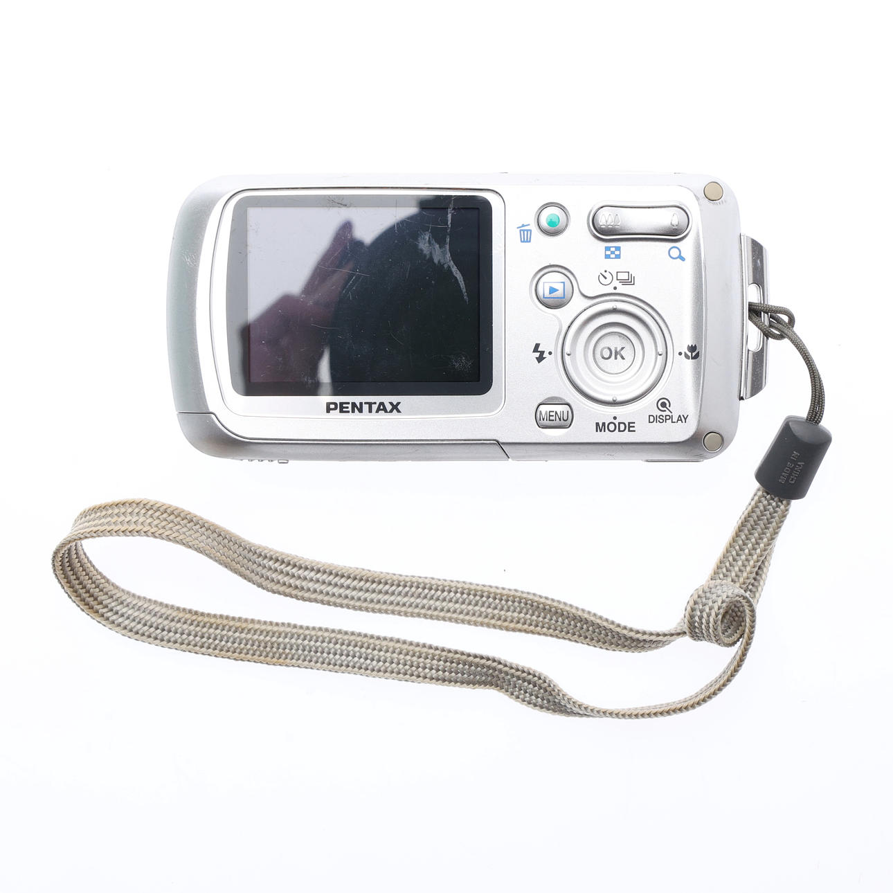 Comprising Sony W80, H1, in a soft case, and a Pentax Optio WPI, boxed. (3 cameras).