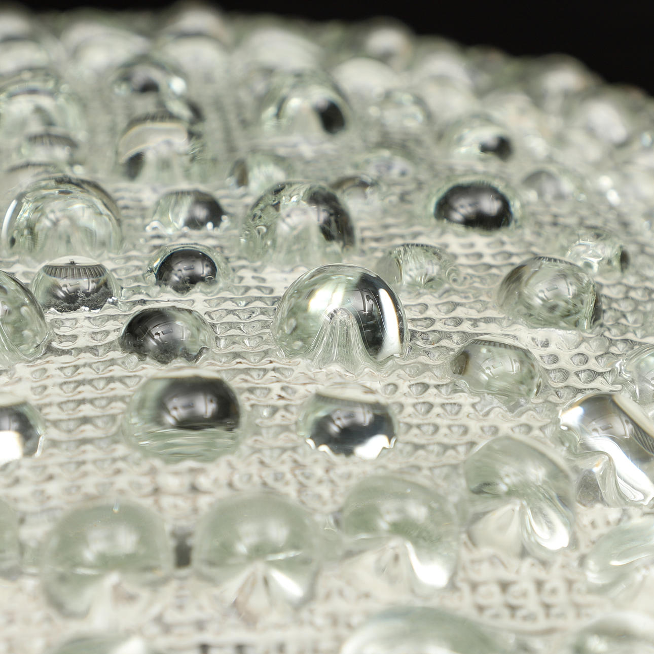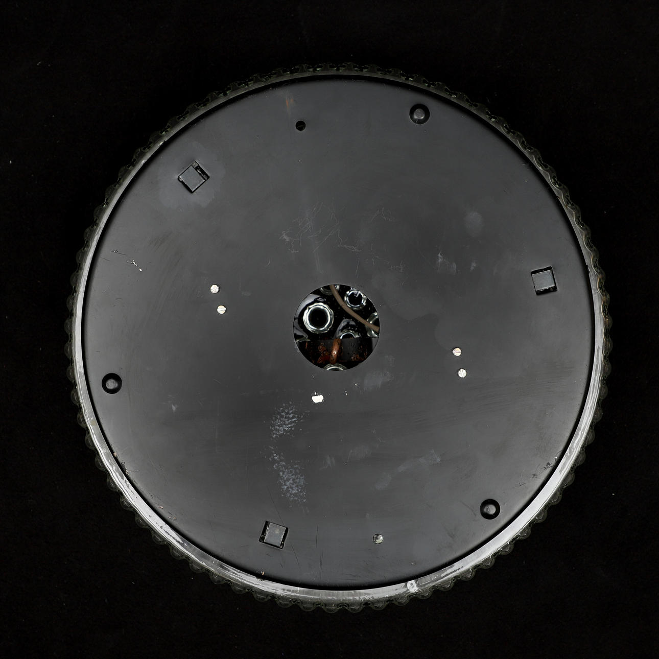 Lacquered metal. Cast glass screen. Two points of light. Diameter approx. 35, height approx. 12 cm.