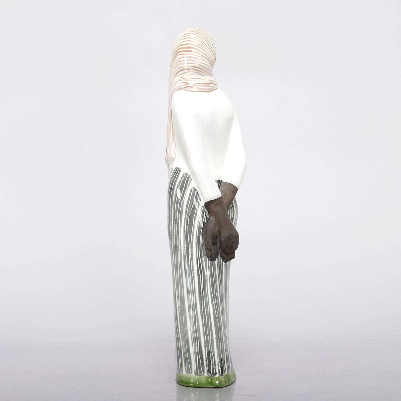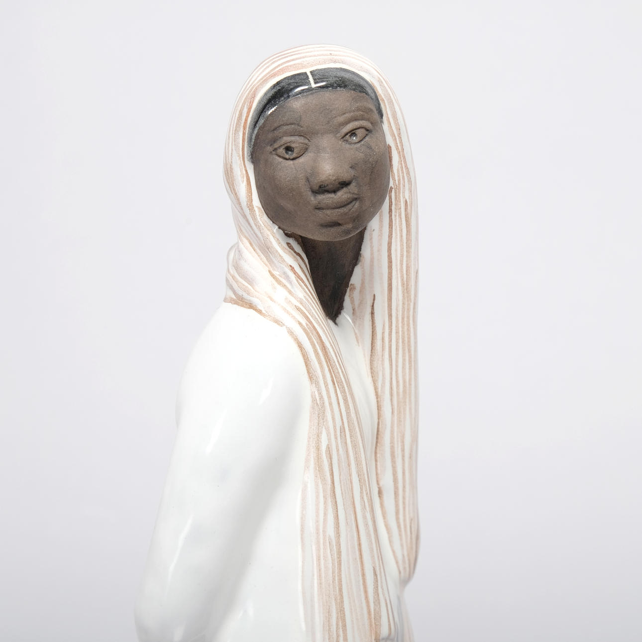 Made of partially glazed stoneware depicting a woman.