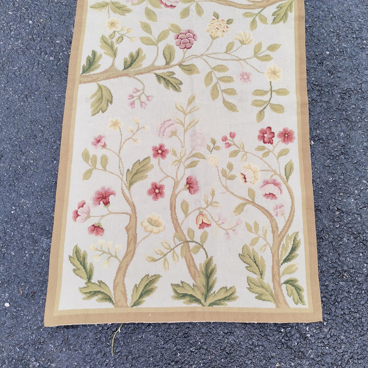 Hand worked tapestry floral carpet / floor runner - 250cm x 78cm.