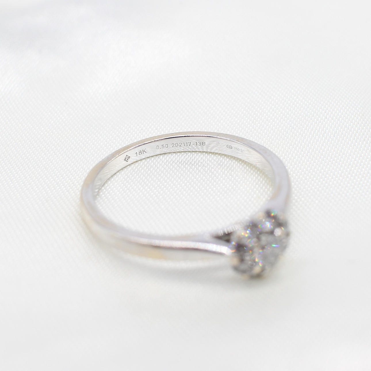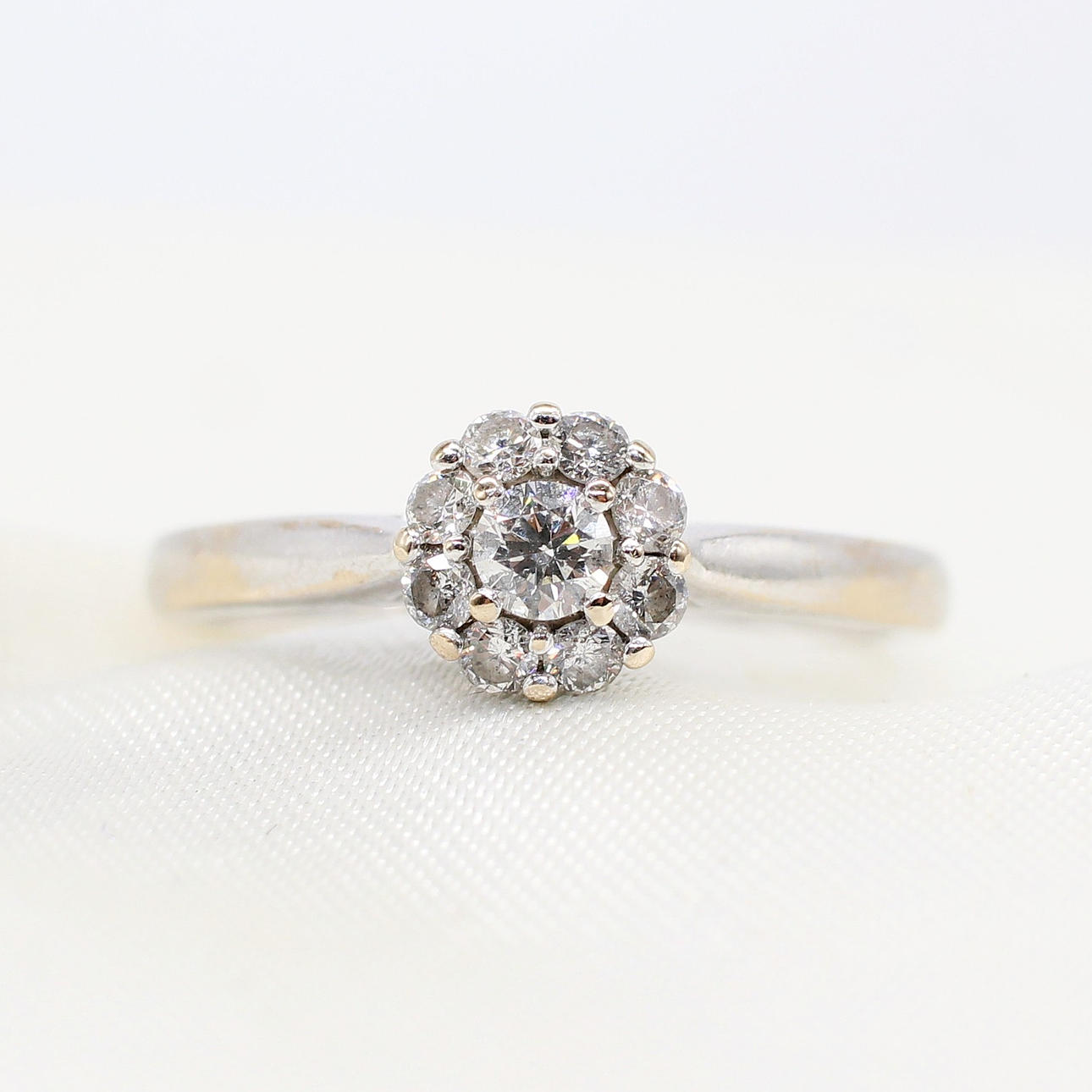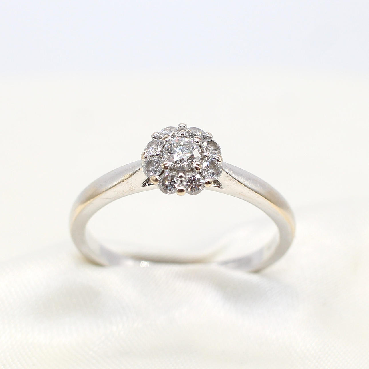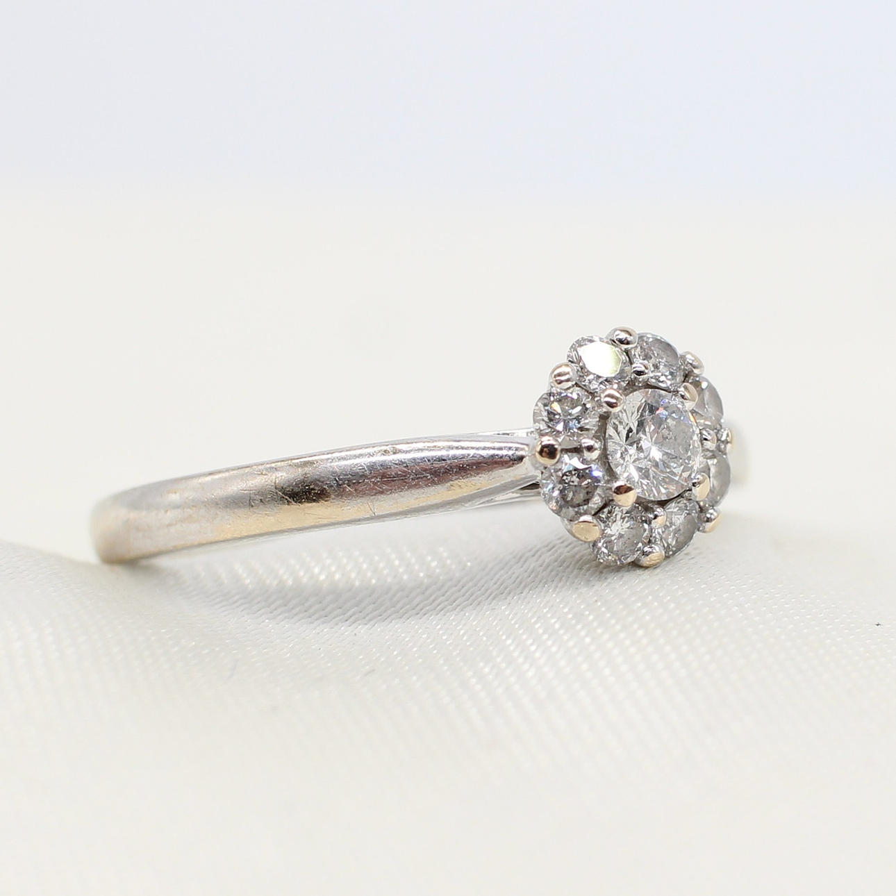 An 18K White Gold (Hallmarked) Round Brilliant Cut Diamond Daisy Style Cluster Ring.
