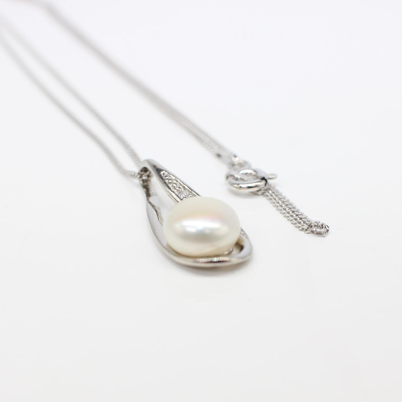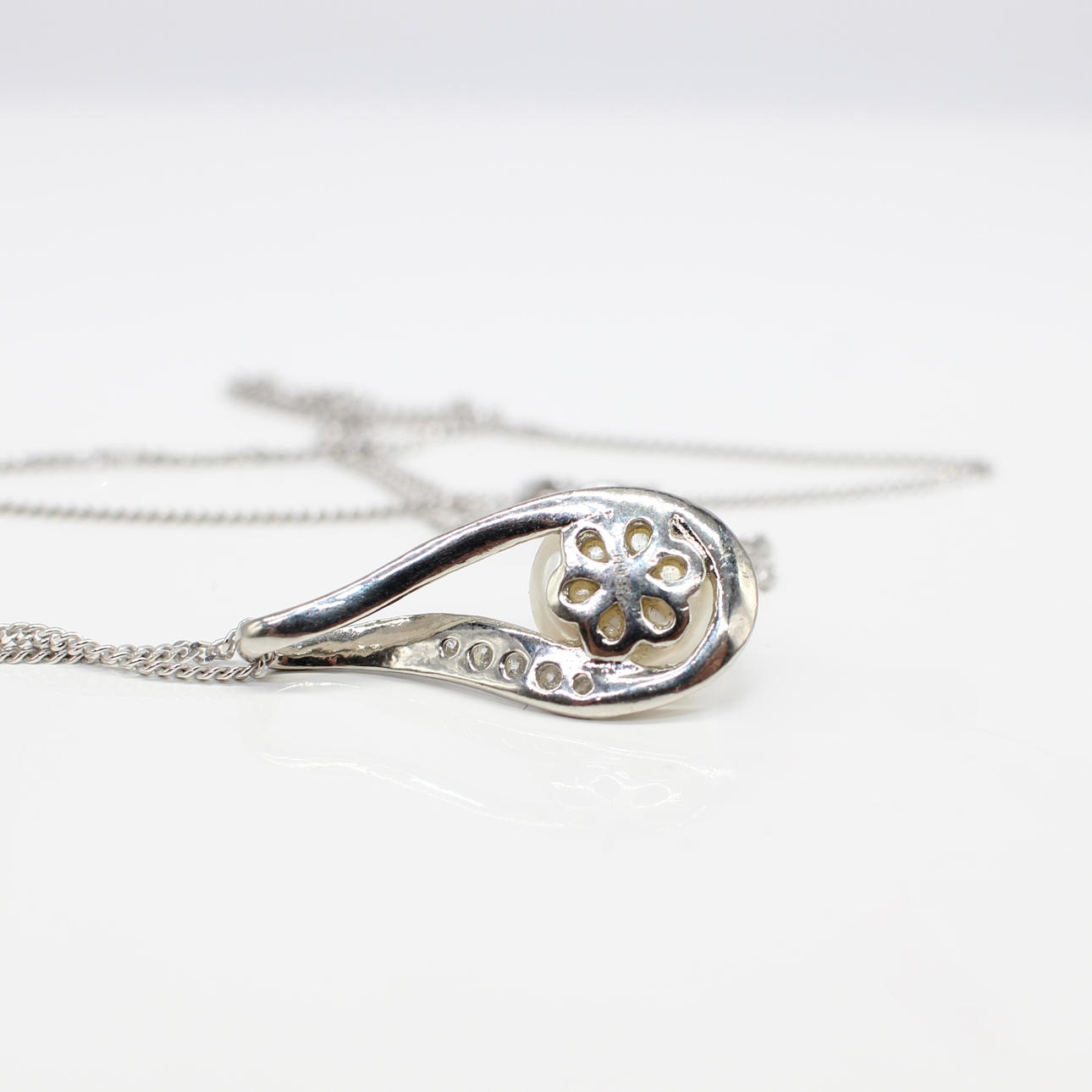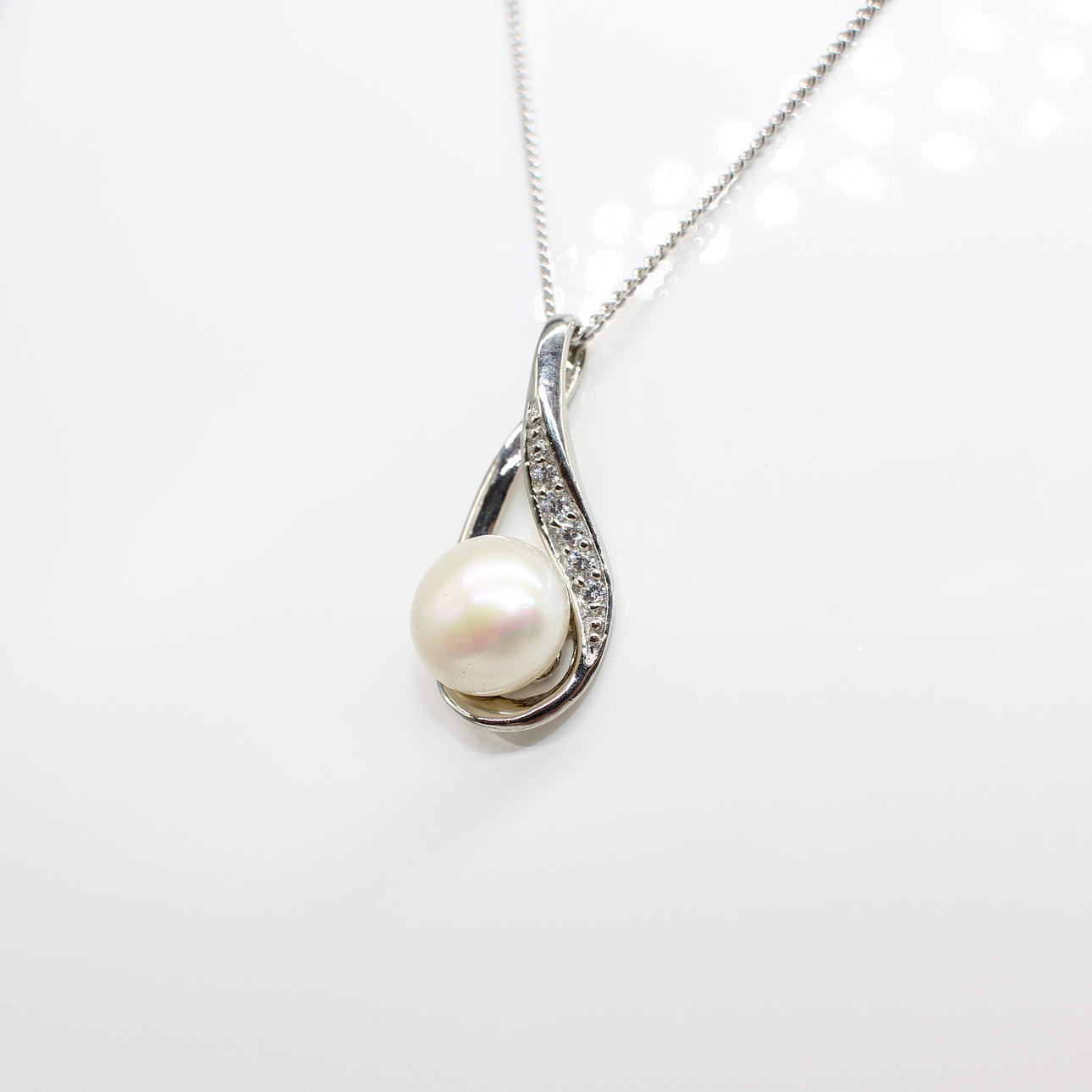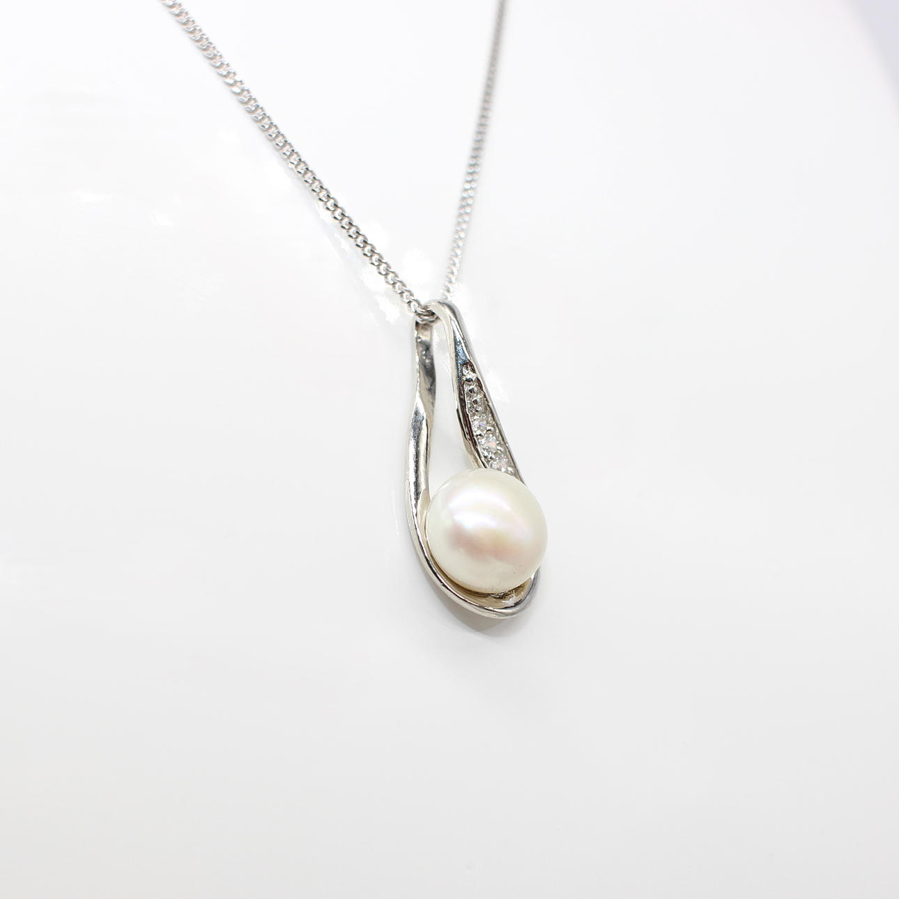 A Silver (Stamped 925) Pear Shaped Pendant Set With A Cultured Pearl And Cubic Zirconia's Hung On A Silver (Stamped 925) Chain
