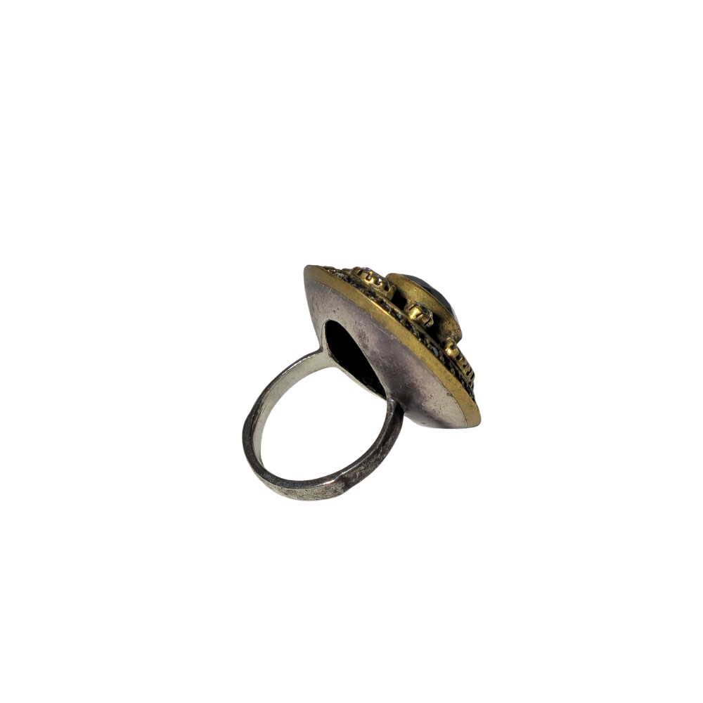 Silver ring and bronze frame with appliques.