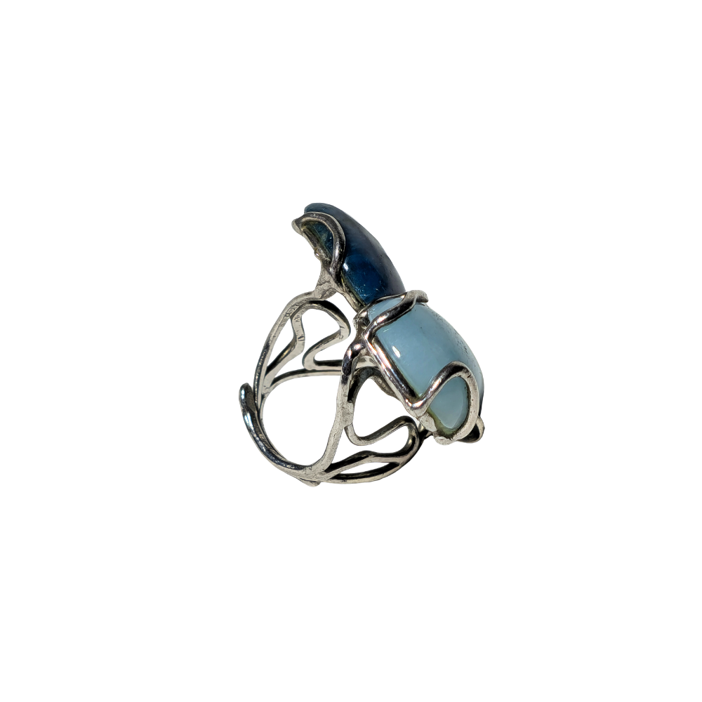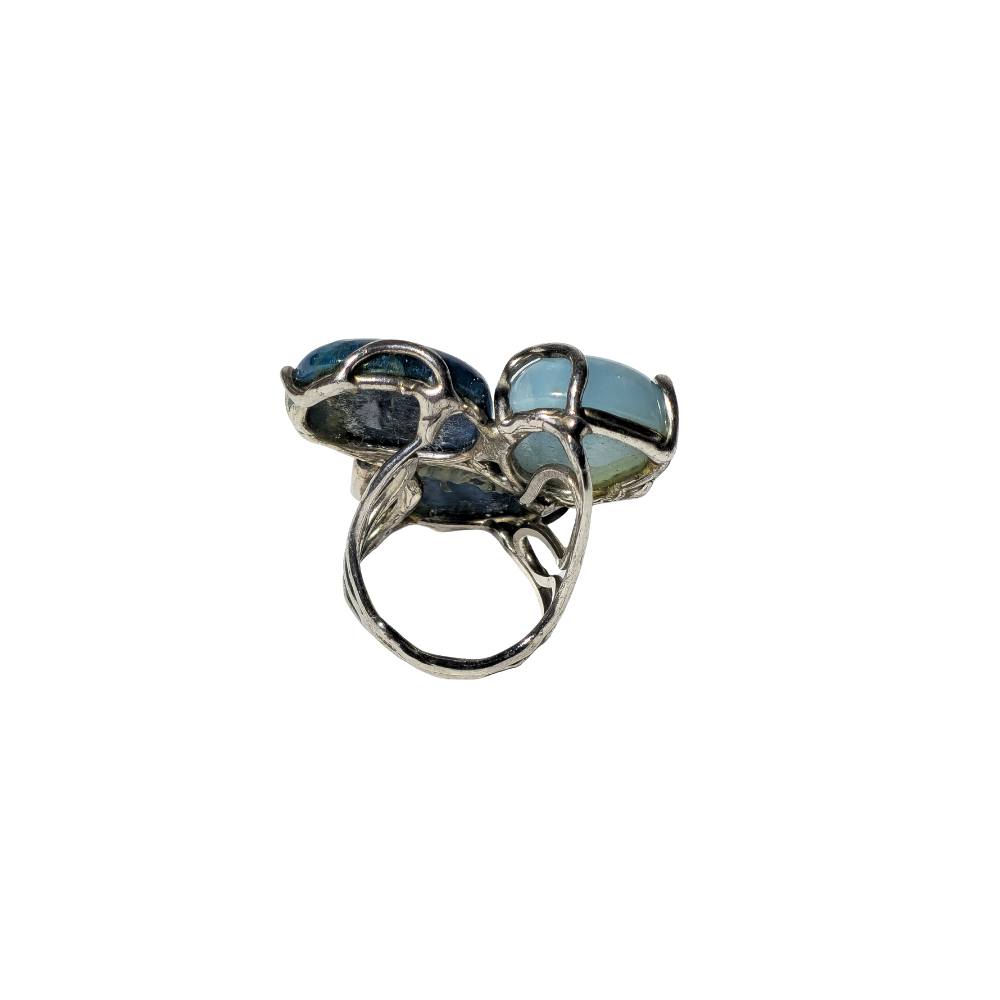 4959405. SILVER RING WITH BLUE STONE TRIO IN CABOCHON.