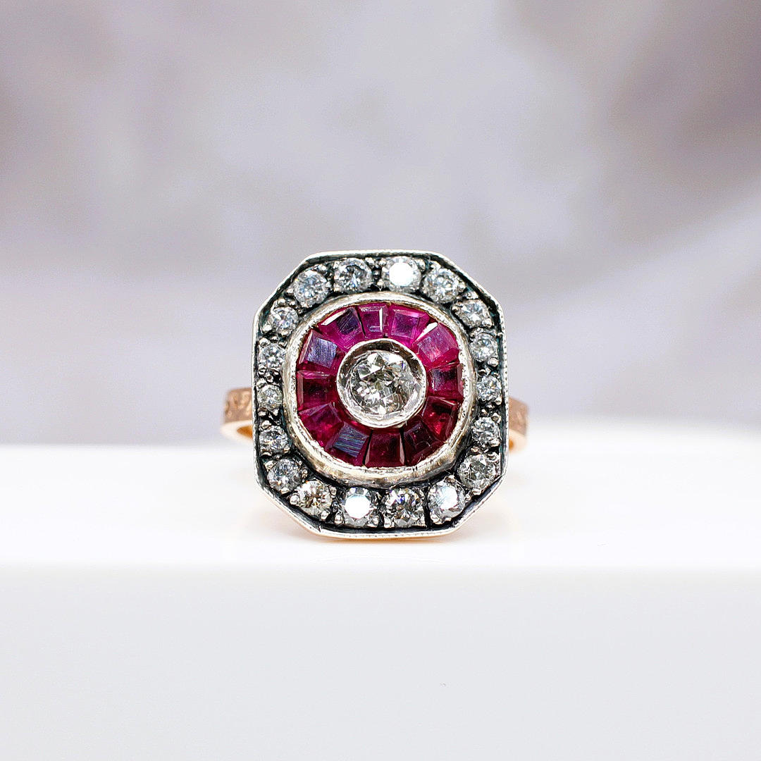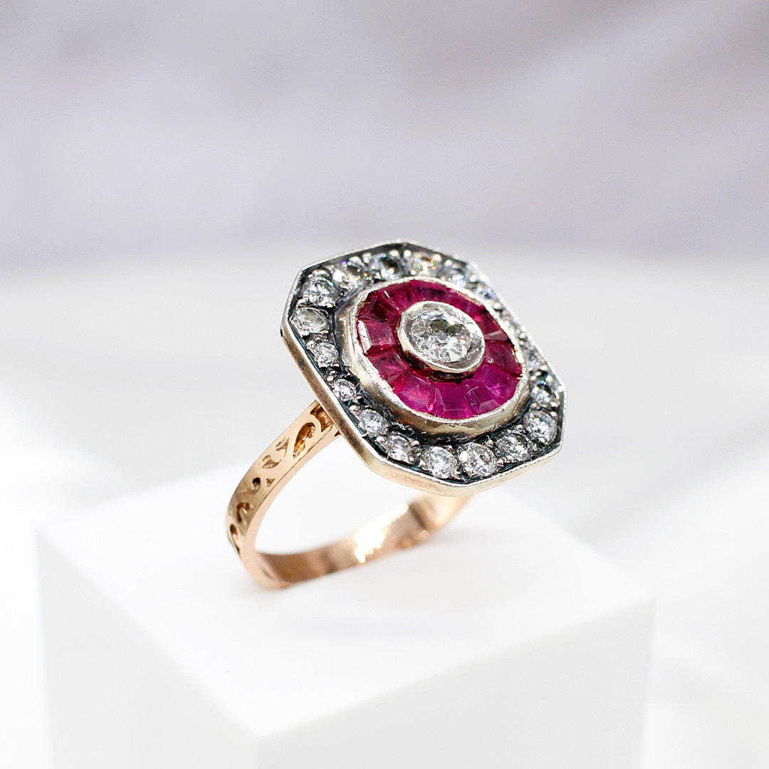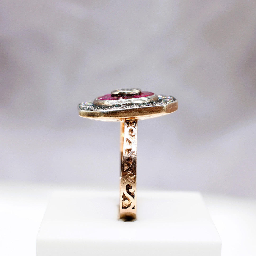 An Ottoman Style 8ct Rose Gold (Unmarked But Tested As 8ct) And Silver Topped Dress Ring Set With Rubies And Diamonds