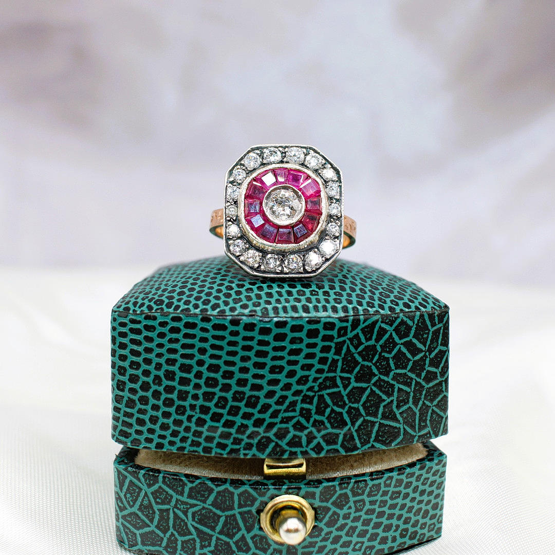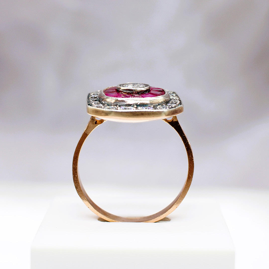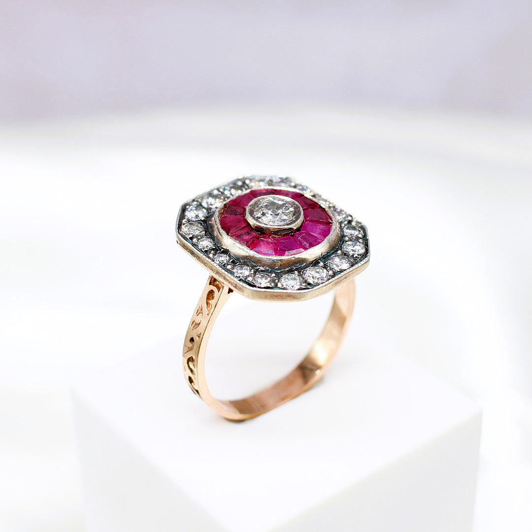 An Ottoman Style 8ct Rose Gold (Unmarked But Tested As 8ct) And Silver Topped Dress Ring Set With Rubies And Diamonds