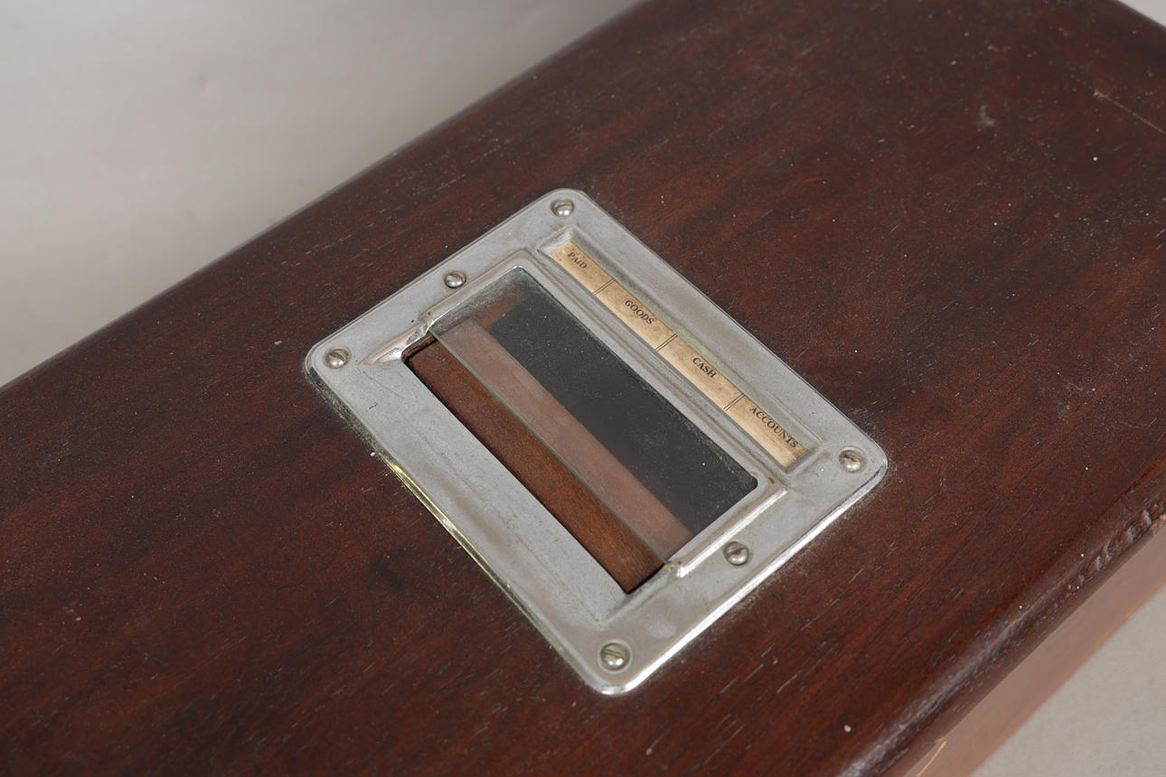 Bell rings when the drawer is opened, no key present, surface scratches and marks.
