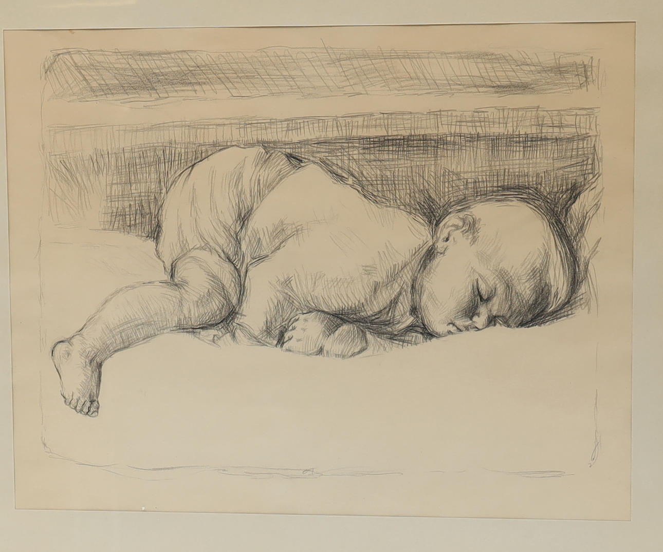 IB SPANG OLSEN. Attributed, drawing, sleeping child, unsigned.