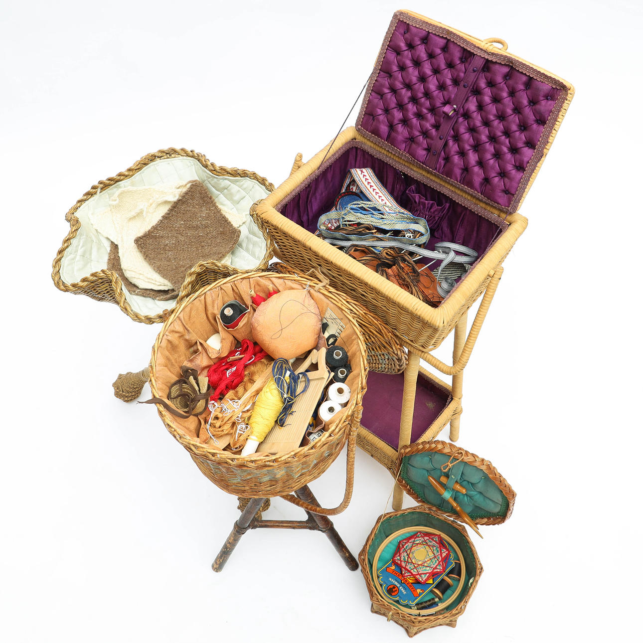 4959629. 4 baskets, rattan, for sewing accessories.