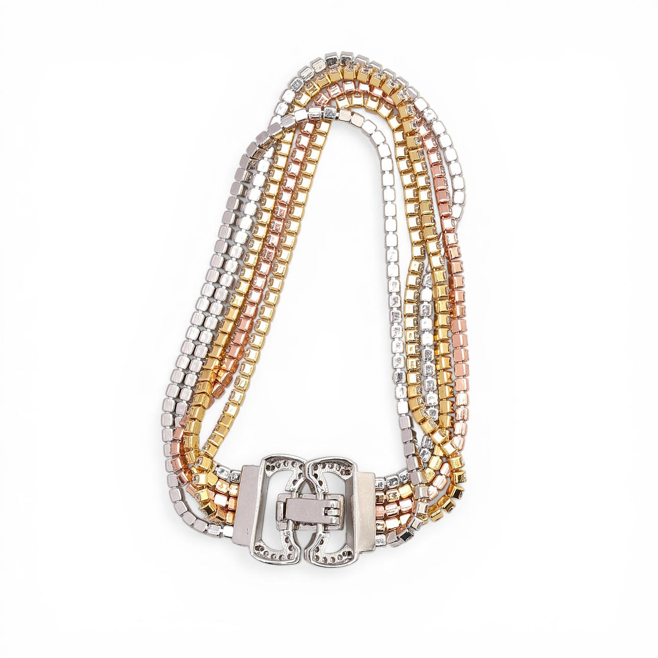 Silver, over-gilded silver, rose silver and zircons. 16 cm. 12.8 gr.