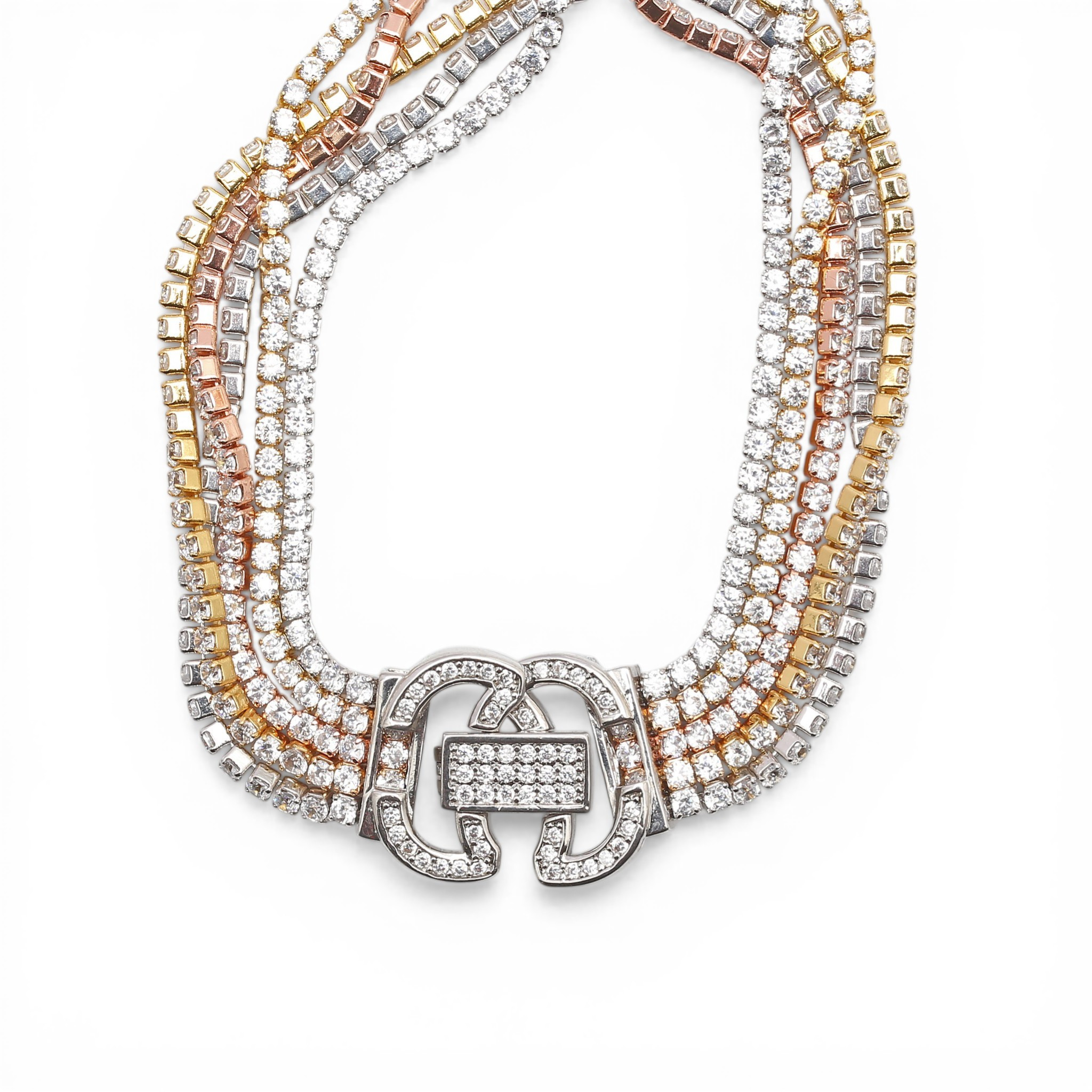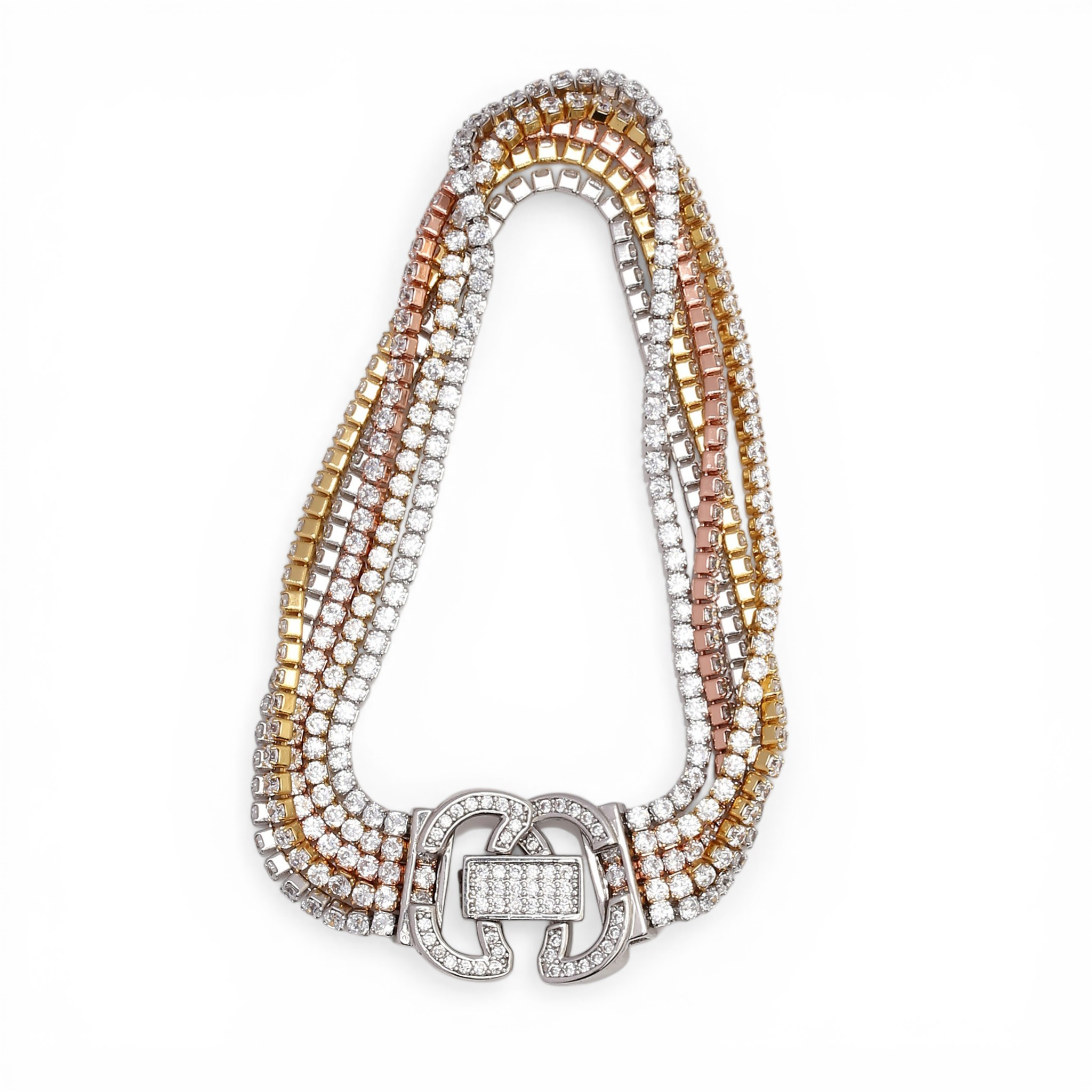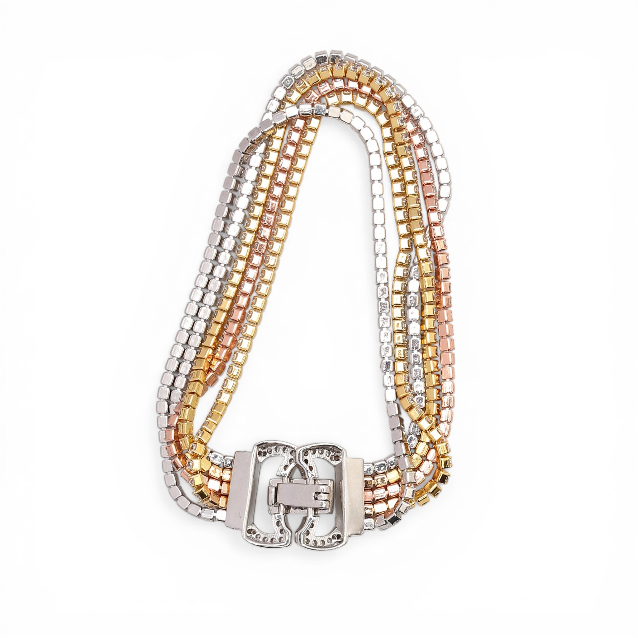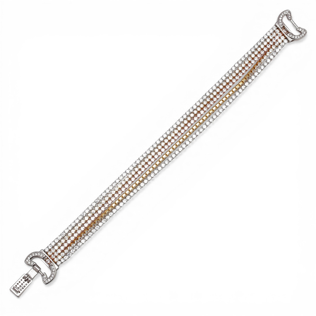 4959690. Three-coloured silver bracelet with zircons.