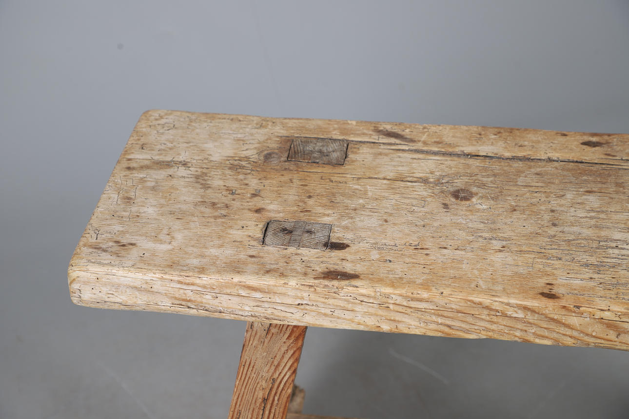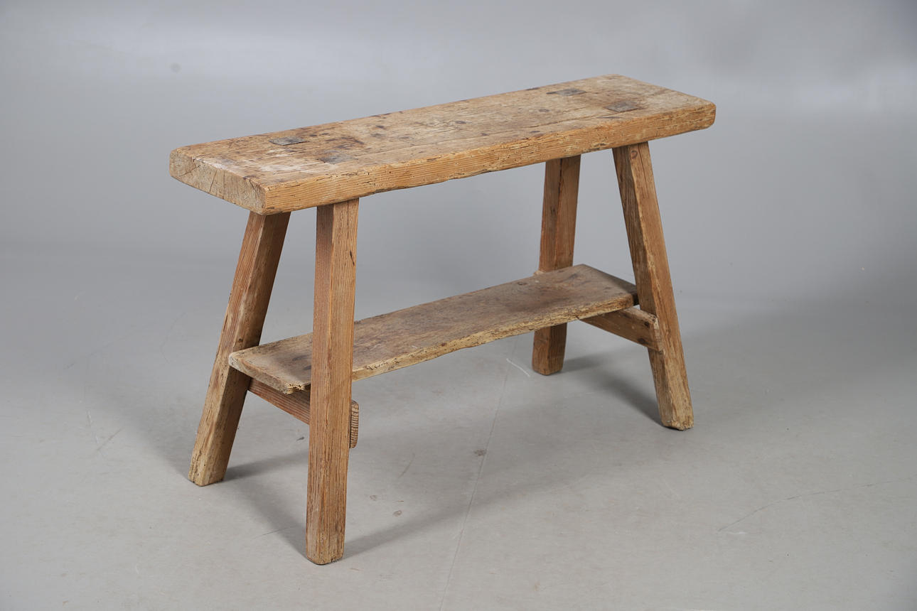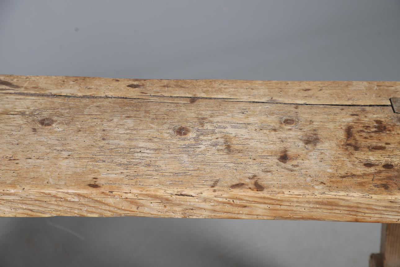 4960218. A SMALL WAXED PINE TRESTLE SEAT.