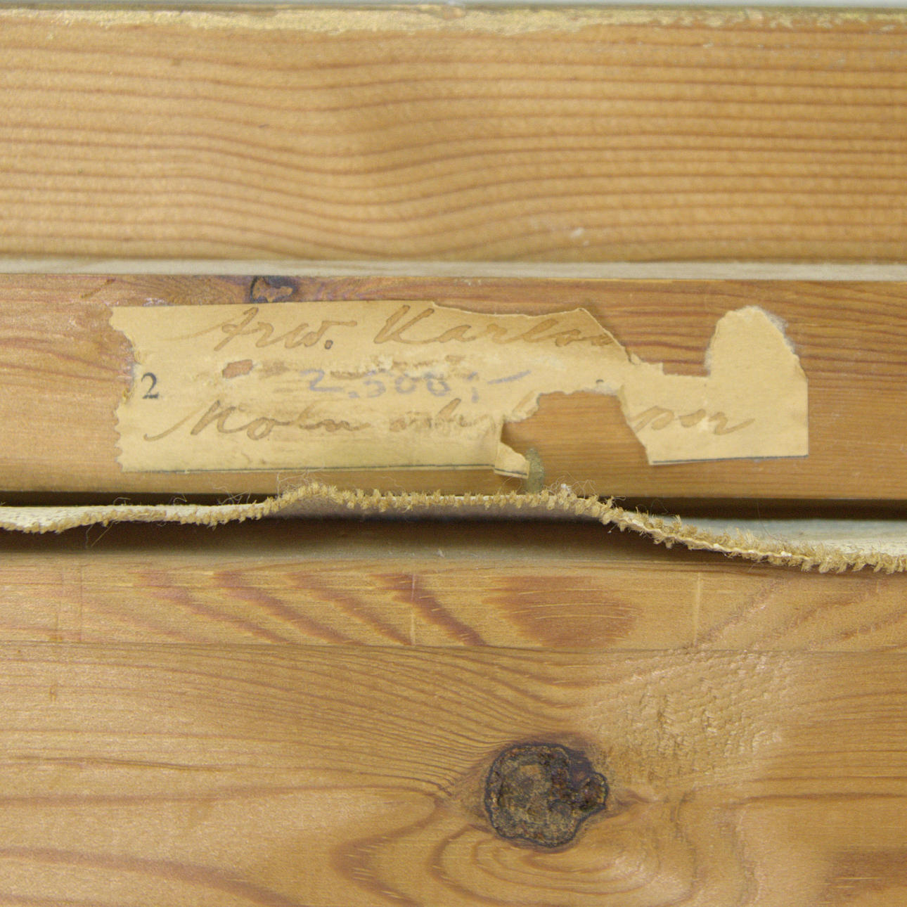 The canvas sits slightly warped in the frame. Frame with badges.
