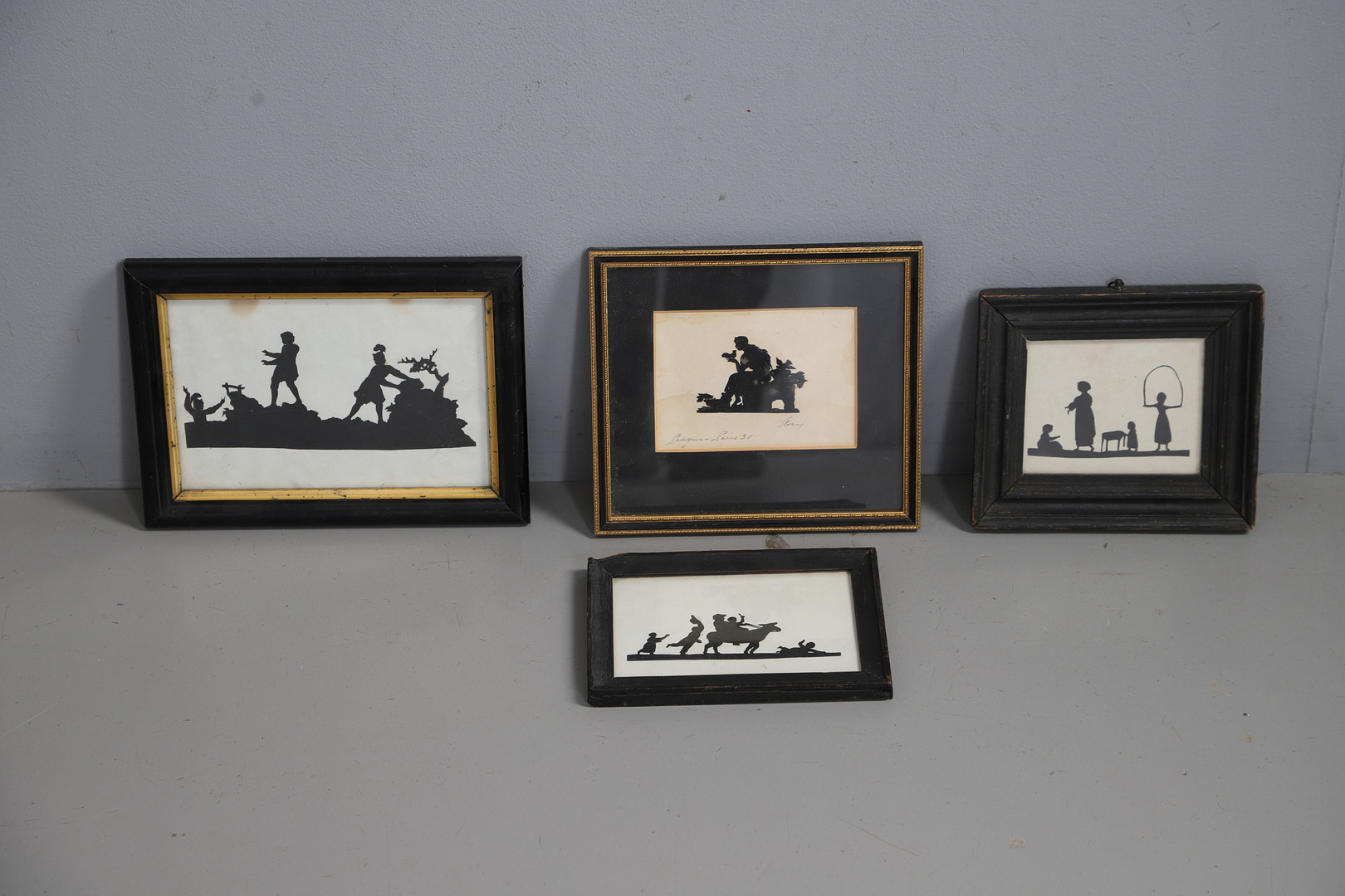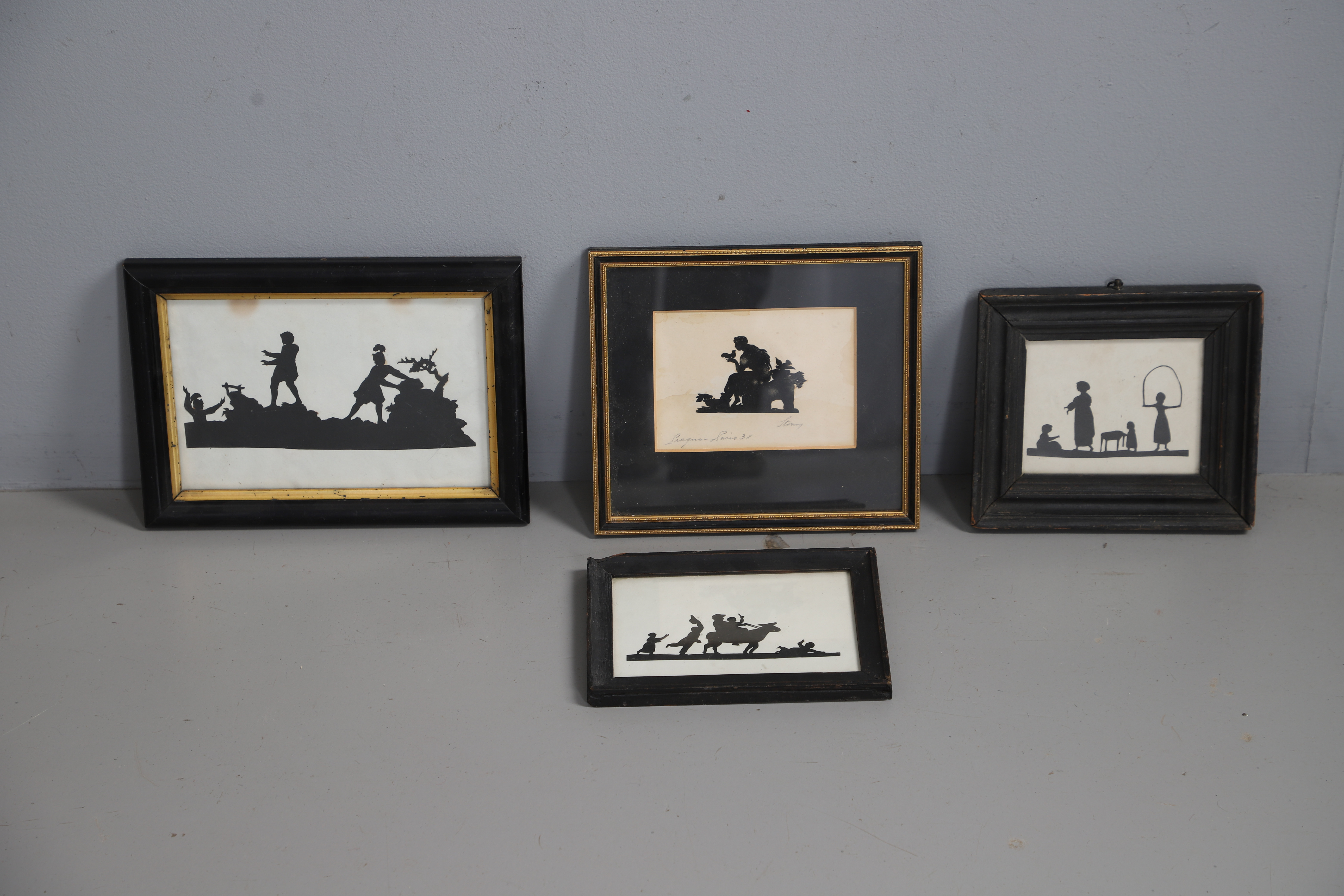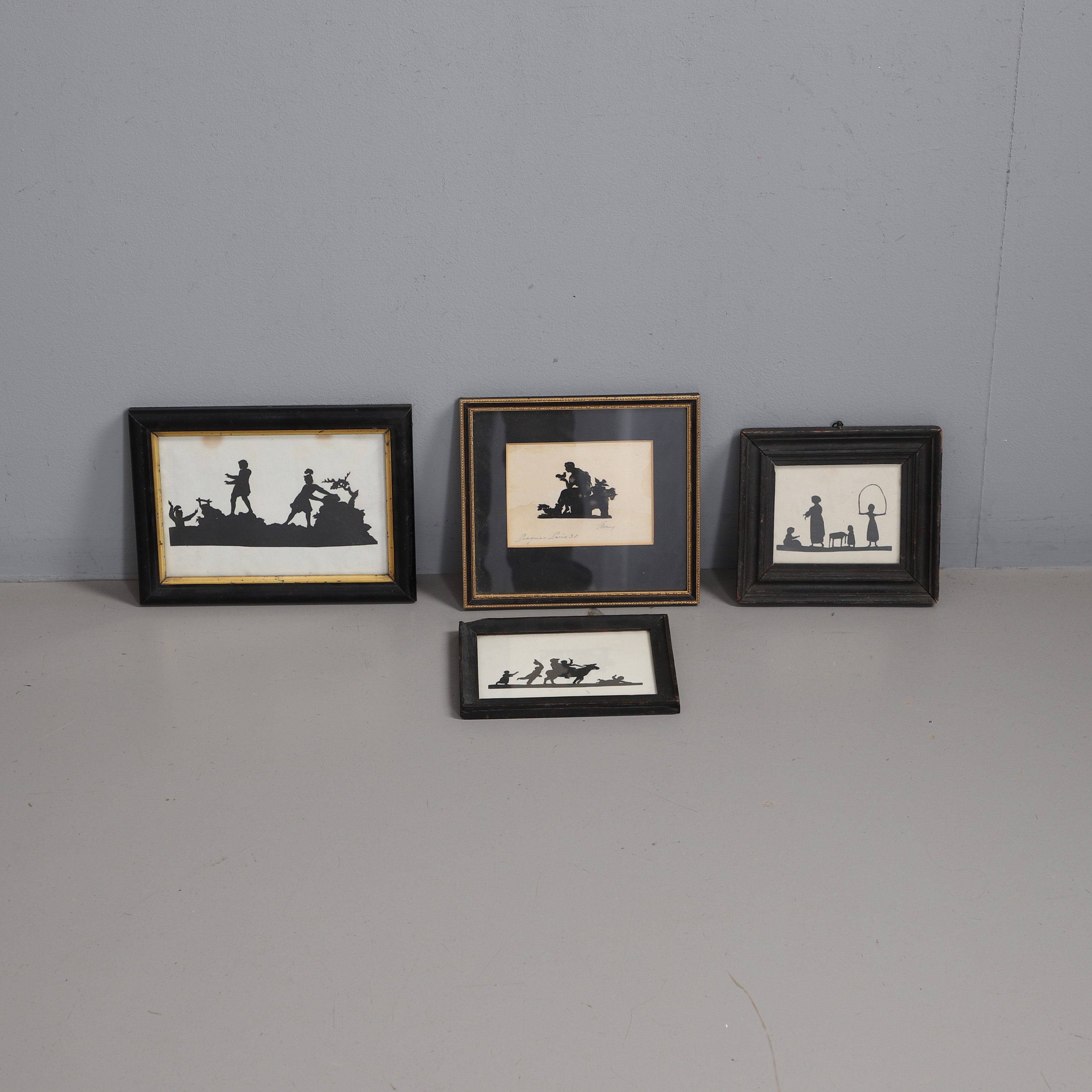 4960548. FOUR FRAMED CUT PAPER SILHOUETTES.