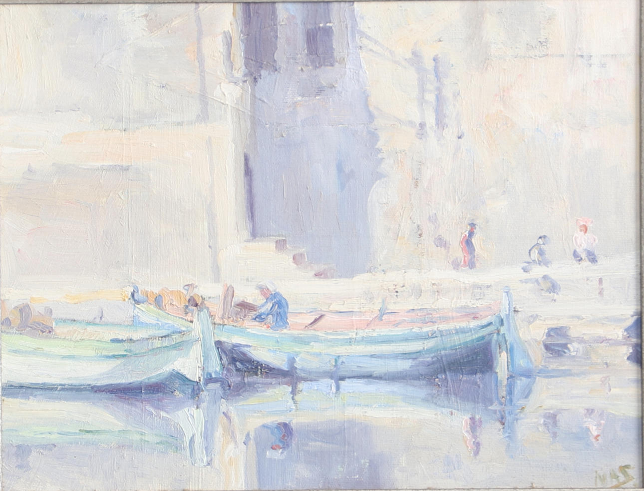 oil on board, initialed lower right, 42cm x 32cm (62cm x 52cm including frame).
