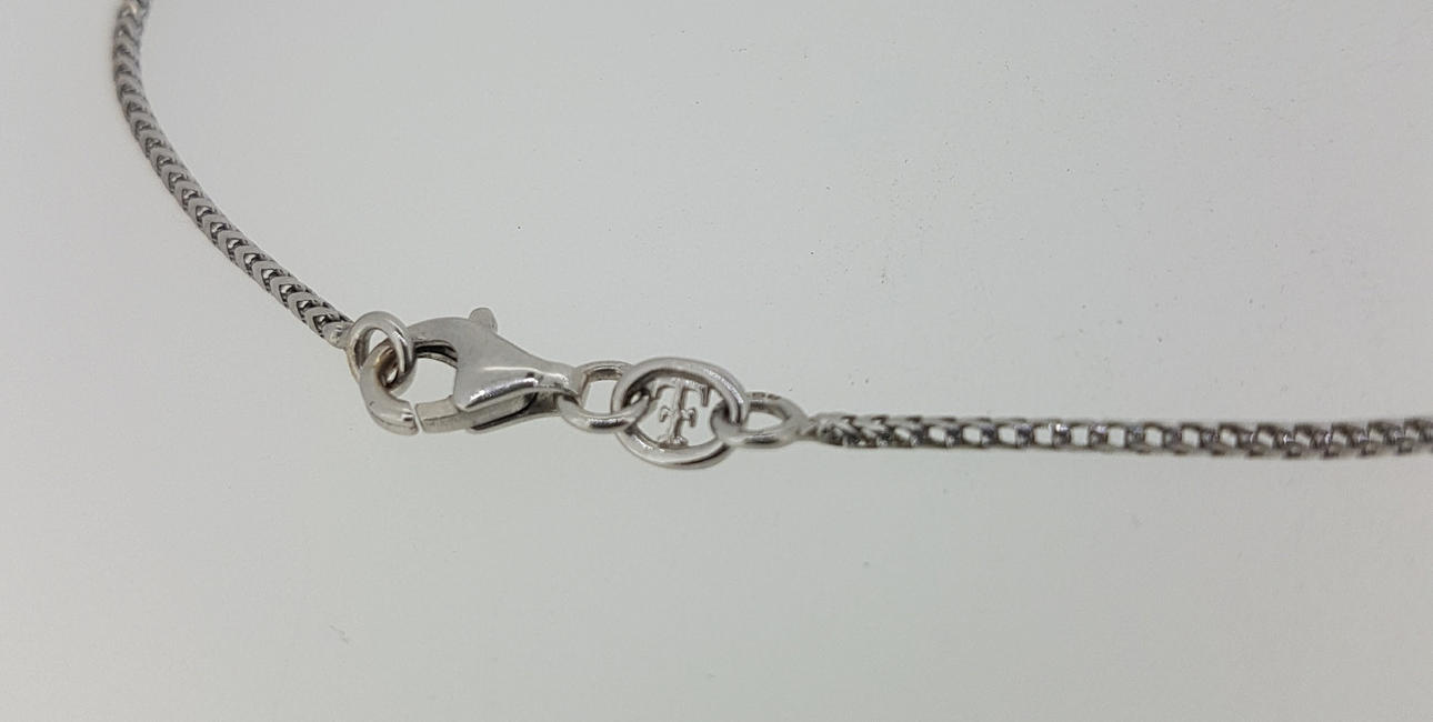 The pendant is hallmarked with a stamp of 18ct white gold.