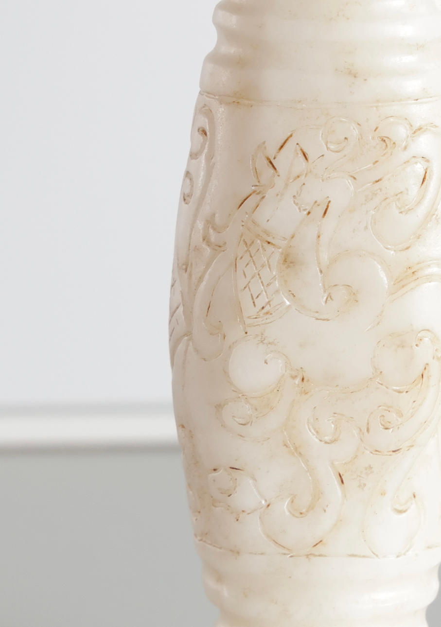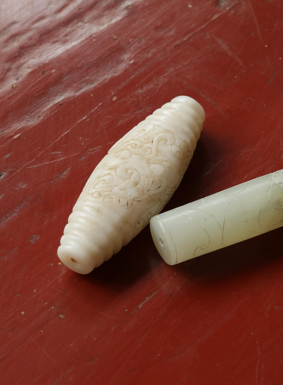 Chinese jade with carvings, through-hole.
