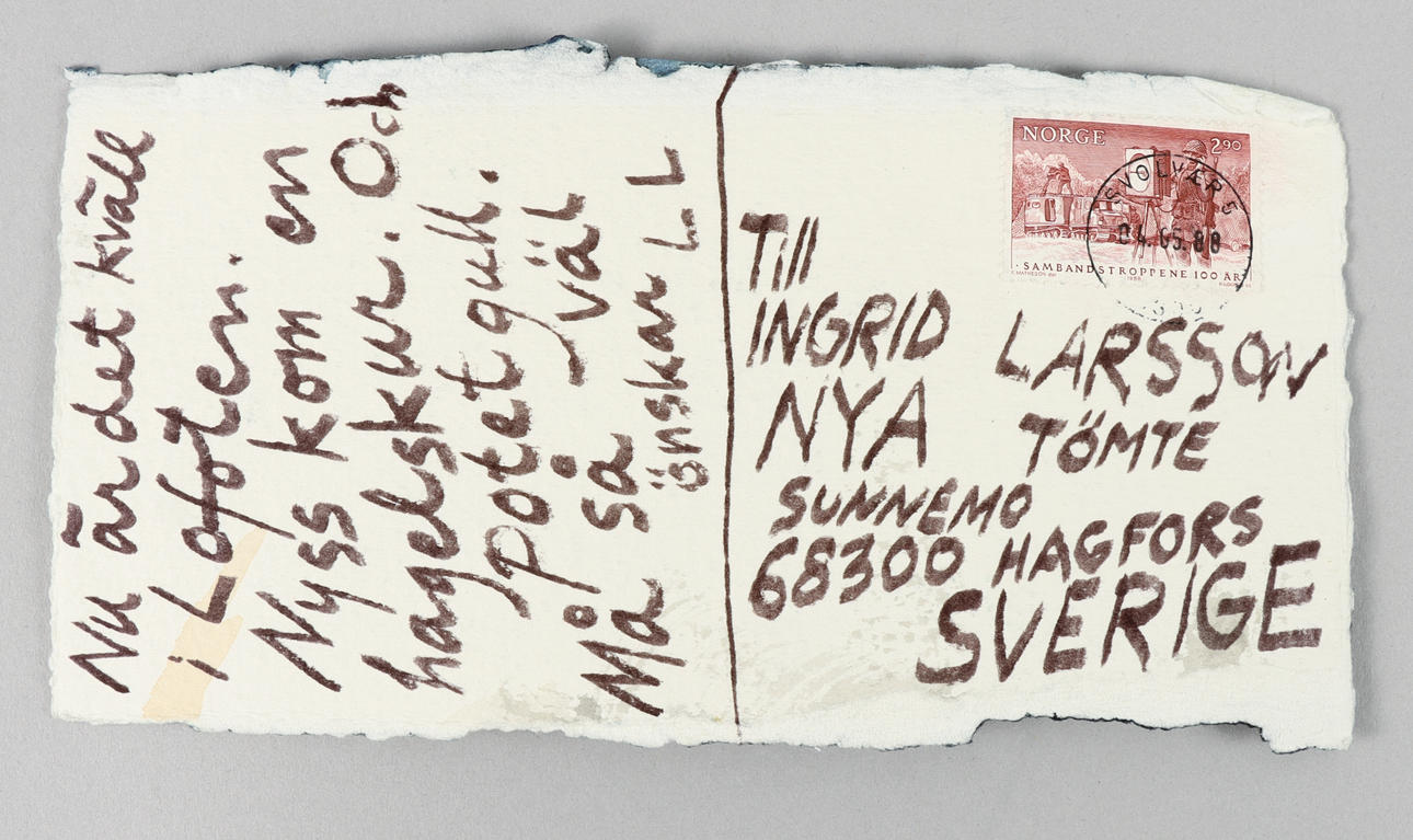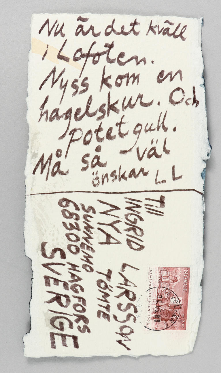 Watercolor on paper. Postmarked Svolvær 04.05.88.