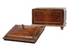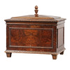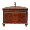 The lift up lid with gadrooned border and finial to the centre, with metal lined interior, raised on block feet, 59cm wide, 43.5cm deep, 41cm high approx. excluding finial.