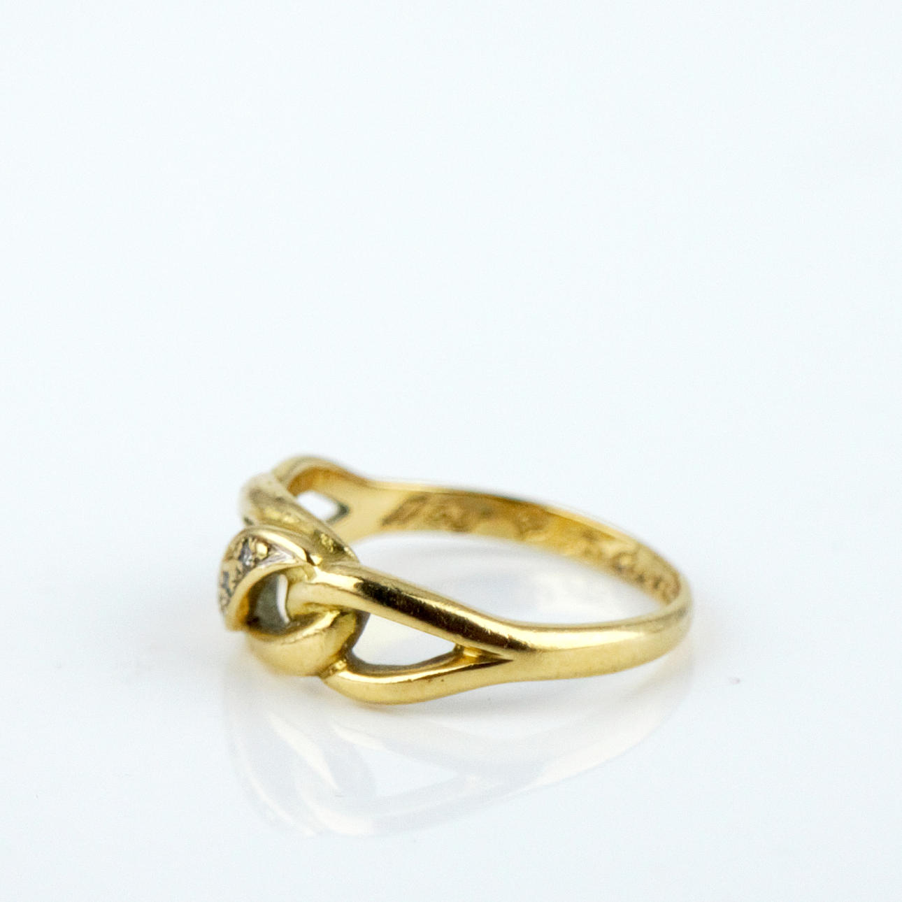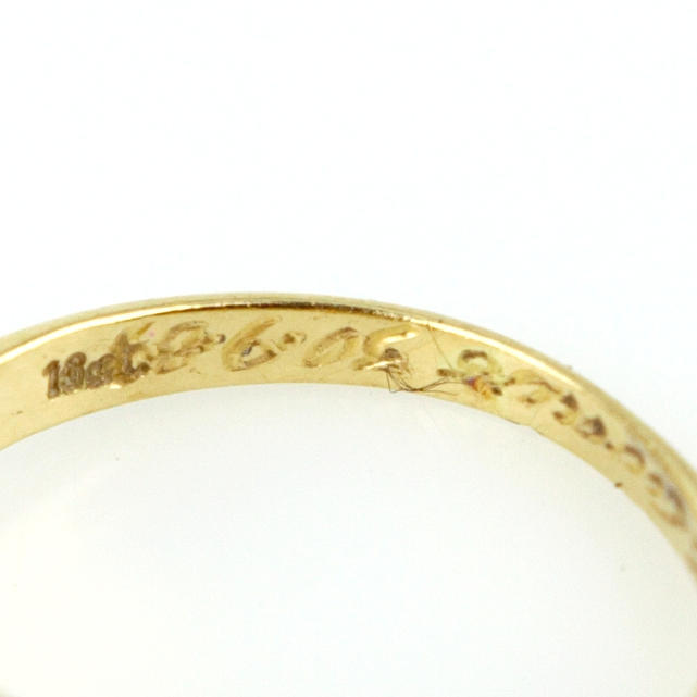 A RING, gold 18k, three mini diamonds, engraving, 1989.