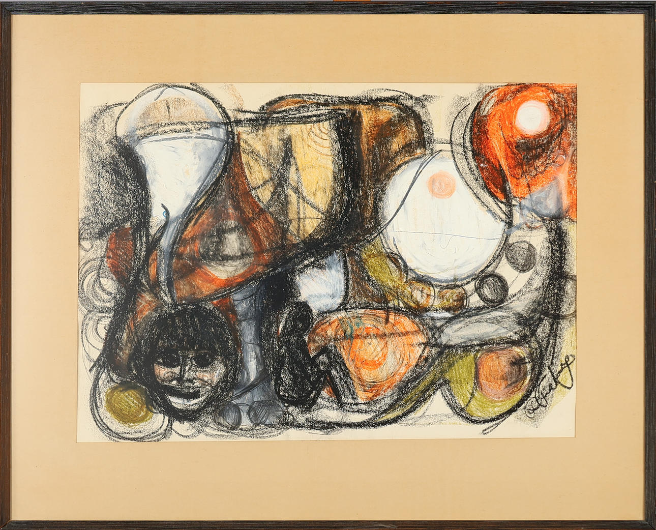 Unknown artist, abstract composition, oil on paper, signed. H. 39.5 x 56 cm, framed 59 x 74 cm. 20/21 yrs.