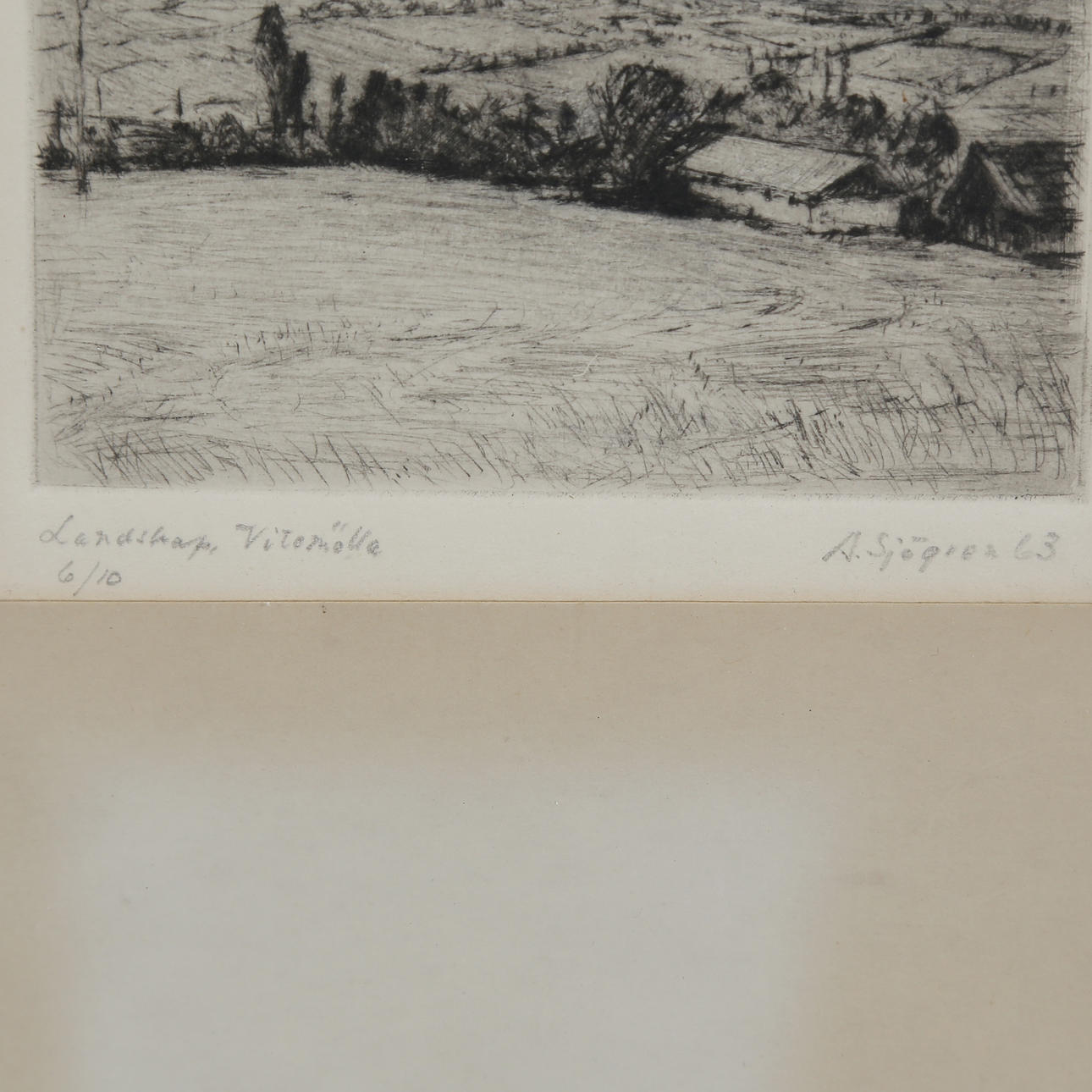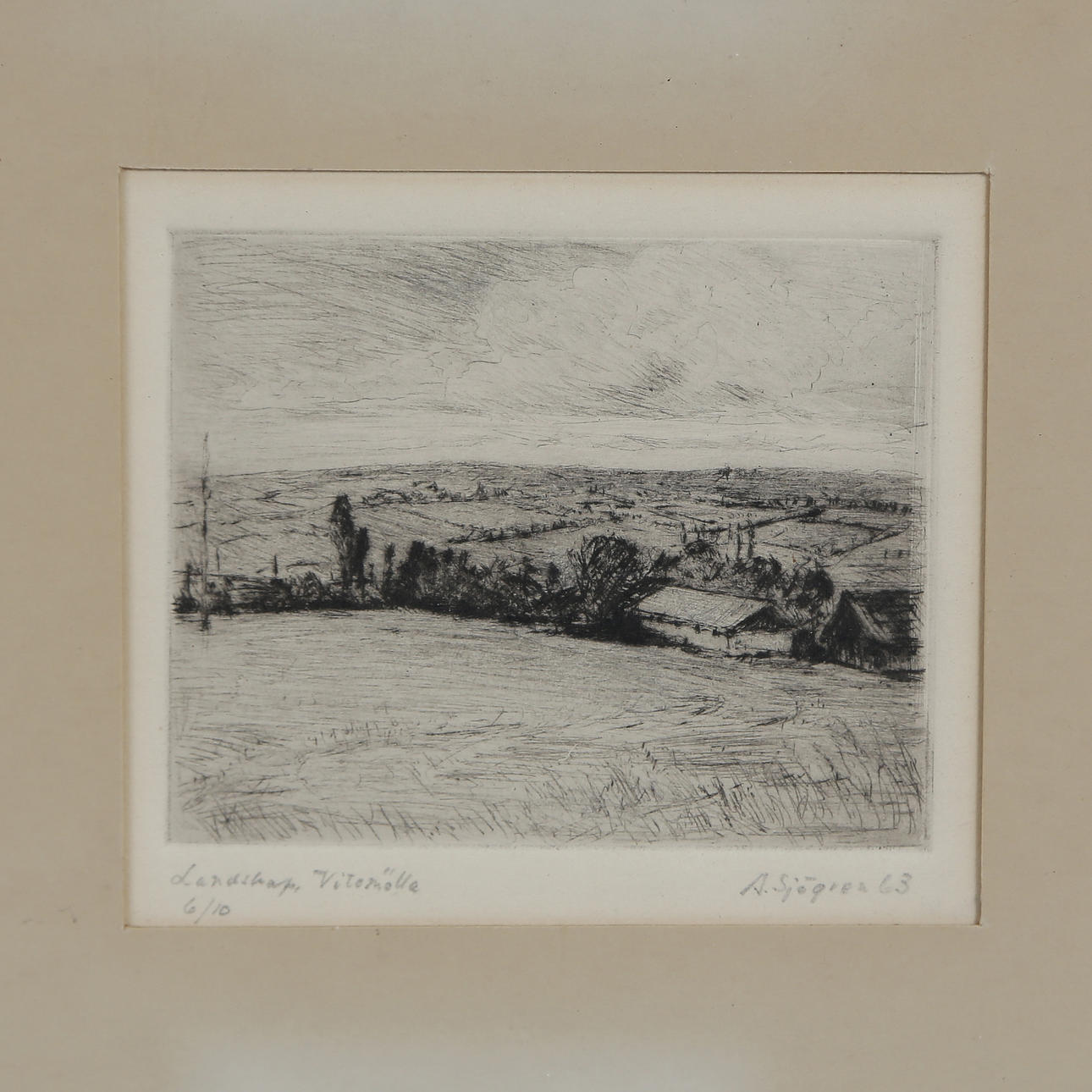 ALEX SJÖGREN, ETCHING “LANDSCAPE, VITEMÖLLA” 6/10, SIGNED.
