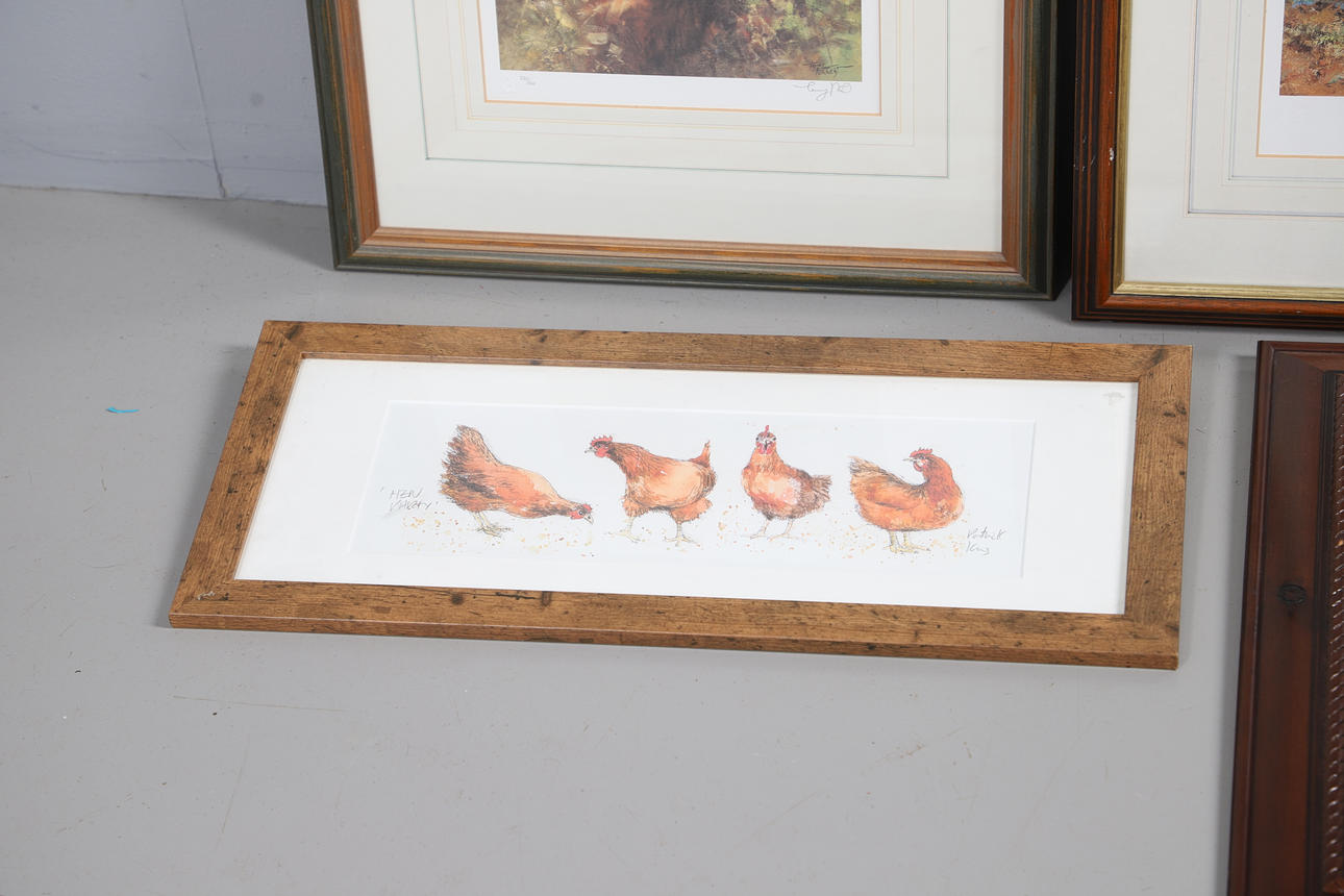 Limited edition print, signed and numbered in pencil 627/975, 52cm x 62cm overall; together with a further David Shepherd print of a lion, a Tony Forest limited edition print of an orangutan, signed and numbered 235/500, and a signed print of hens (4).