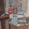 4962096. INGA BERG. OIL ON CANVAS, “Studio, interior”, signed & dated -73.