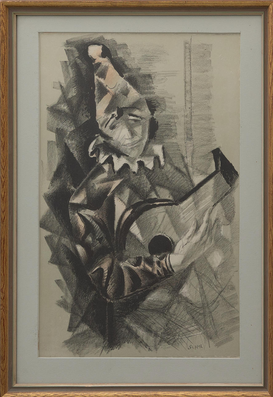 JULES SCHYL. Clown with guitar, lithograph, signed.