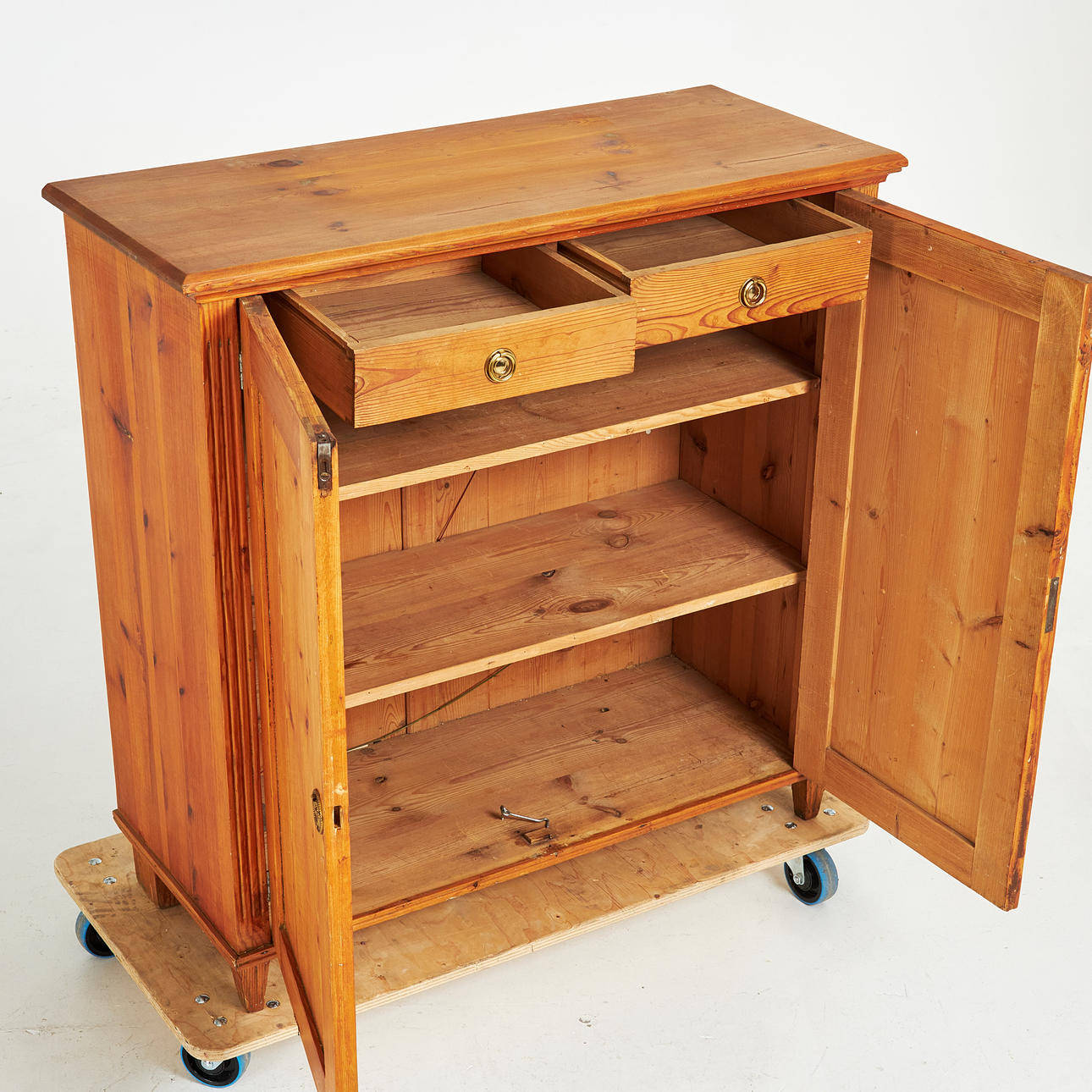 Normal wear and tear, decayed, marks, inside with later hasp.