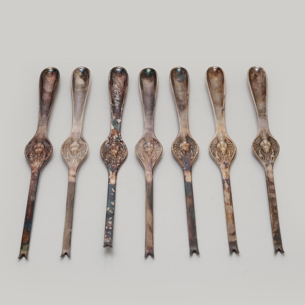 SEAFOOD CUTLERY, 7 PCS, NICKEL SILVER.