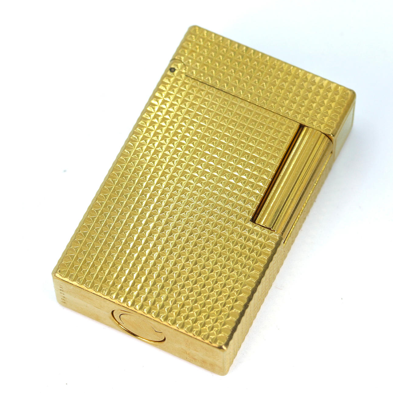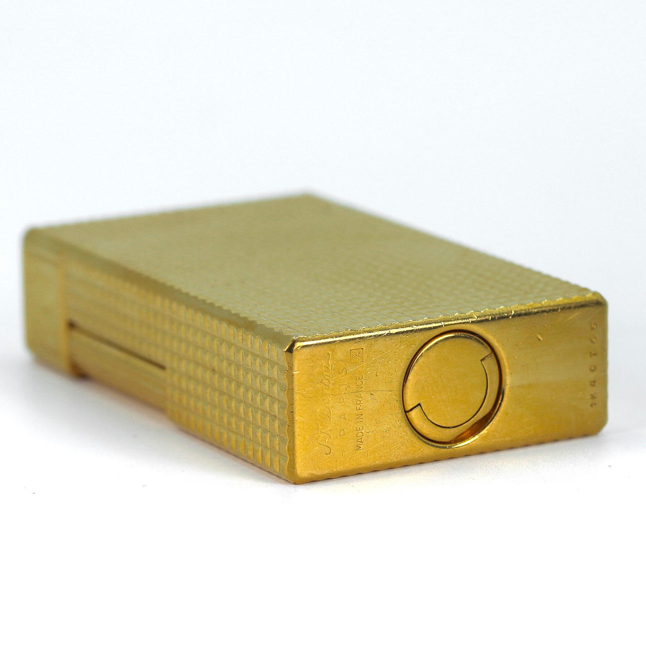 A boxed Dupont gold plated lighter. 6 x 3.5 x 1.5 cms. Box 11 x 13 x 4 cms.