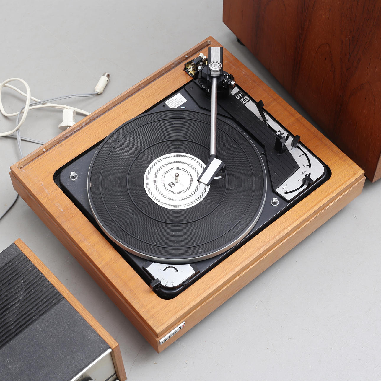Speaker Sonab OA14R size 57 x 42 x 23 cm Turntable Centrum Dual 1015 size 41 x 36 x 18 cm Amplifier Grundig RTV350 size 54 x 23 x 15 cm.