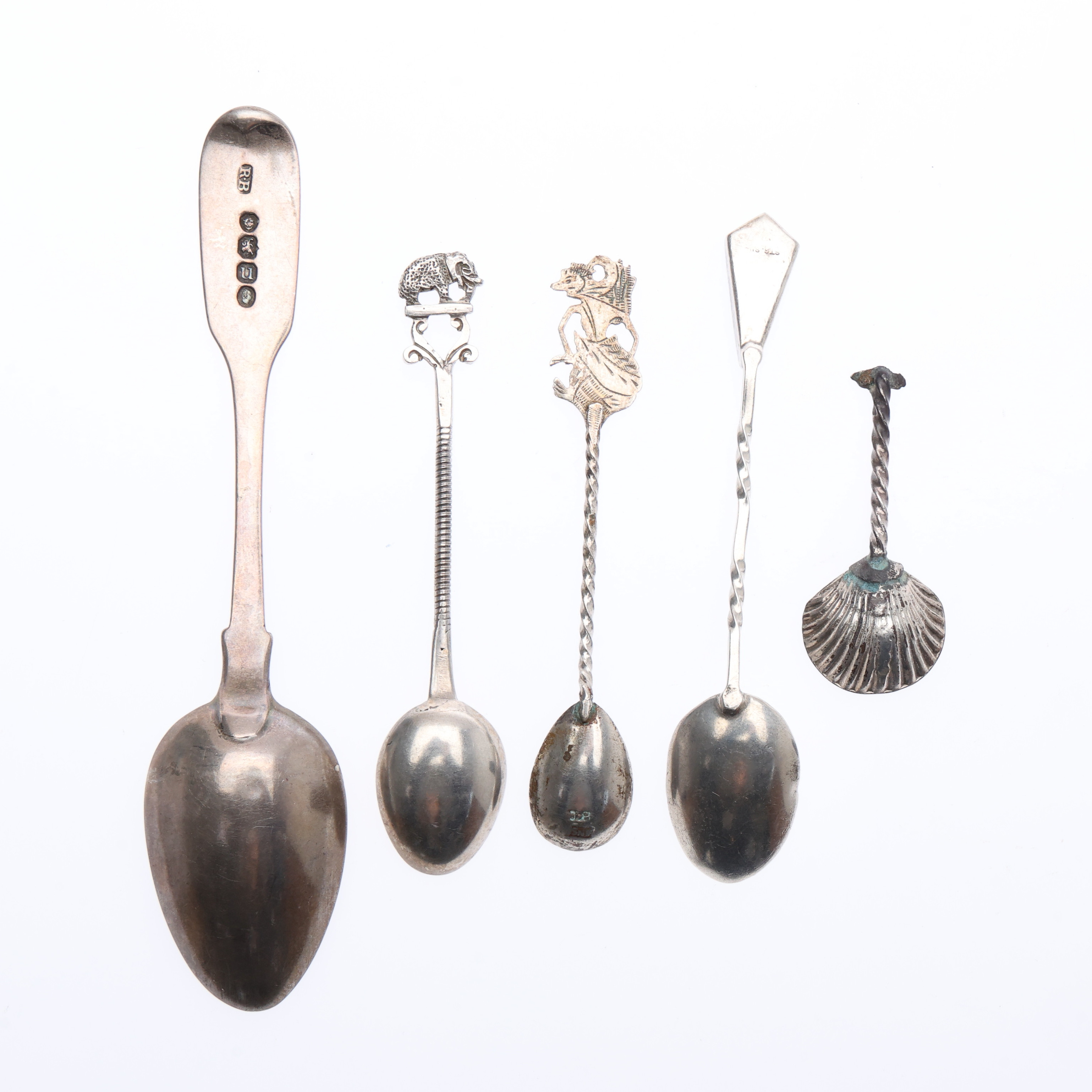 4962507. ASSORTED SILVER SPOONS, KNIFE BLADE, AND A NAPKIN RING. (13).