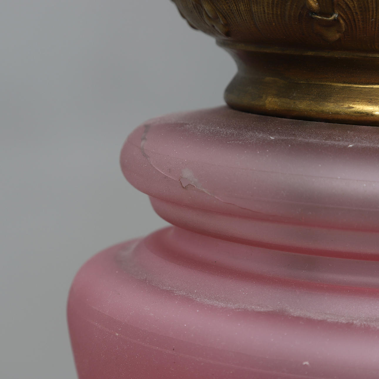 Metal frame, stained glass cup. Height approx. 43 cm.