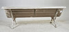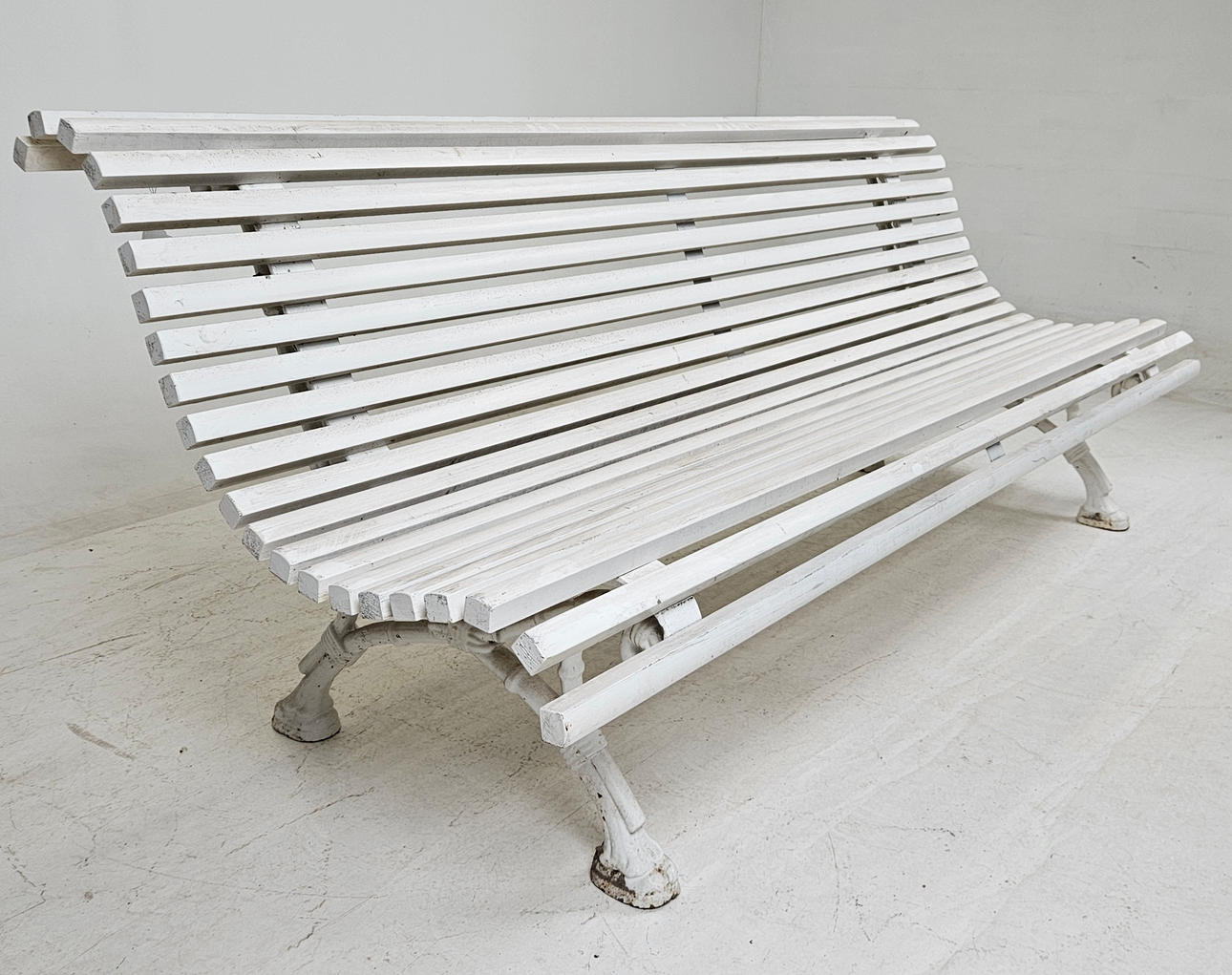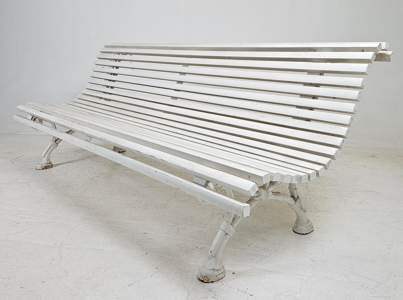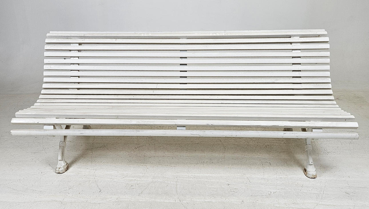 Cast iron gables and wooden slats, painted. Length approx. 198, width 80, height 75, seat height 39 cm.