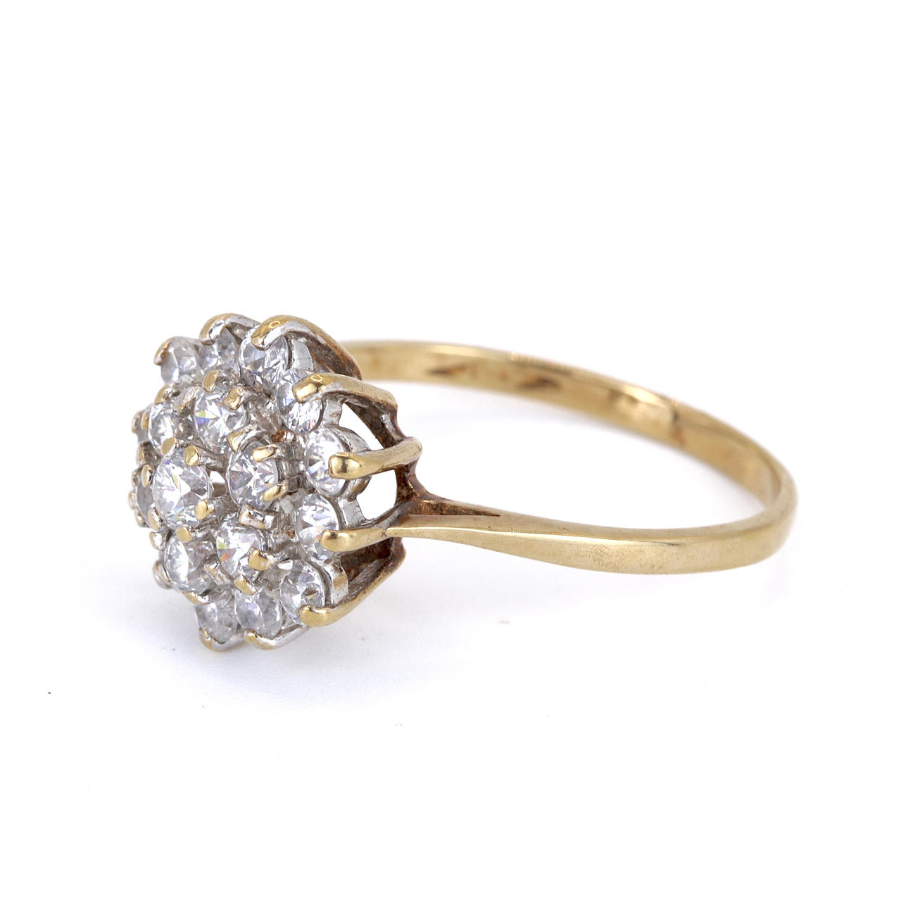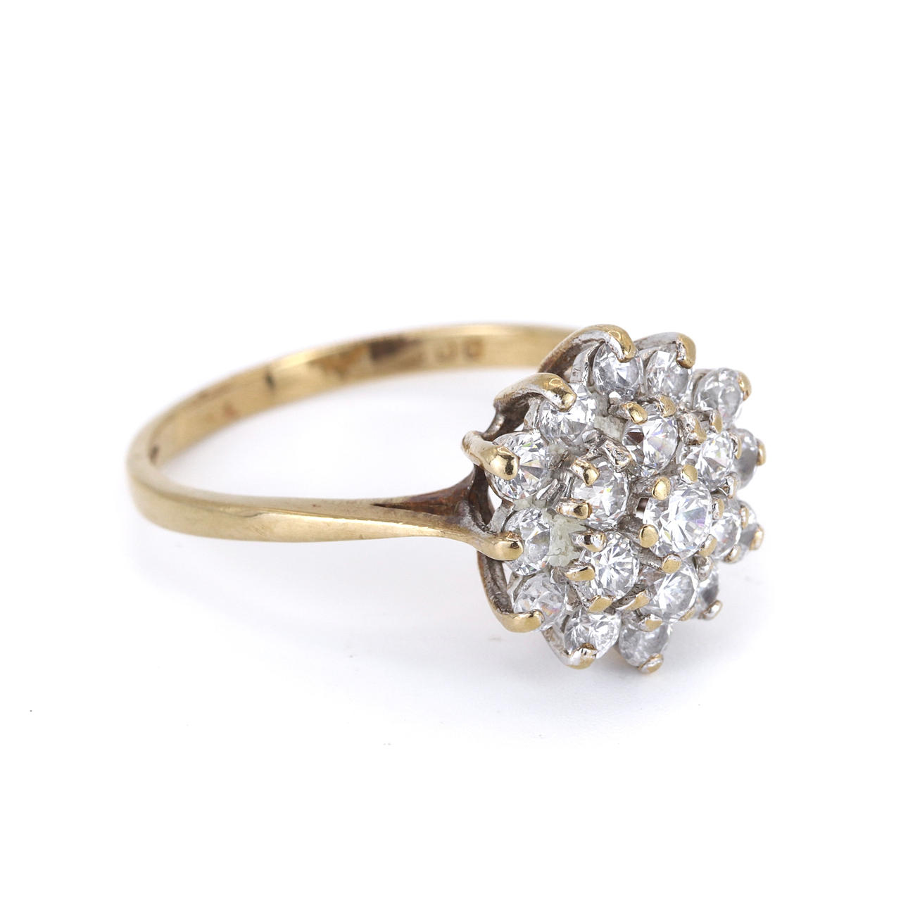 A 9ct yellow gold cluster ring set with cubic zirconias.