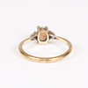 Centered with an oval opal flanked by a diamond either side, ring size M, 1.7g.