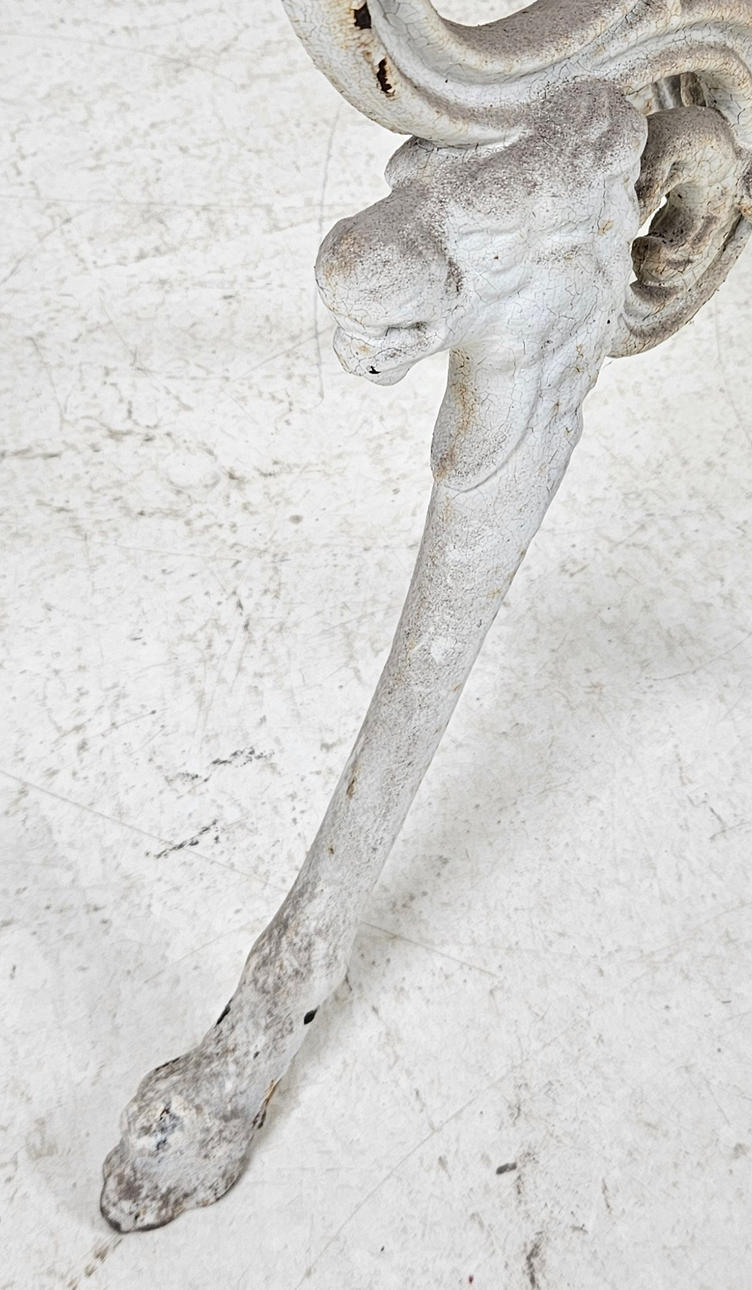 Painted cast iron, decoration with lion heads, diameter approx. 63, height 75 cm.