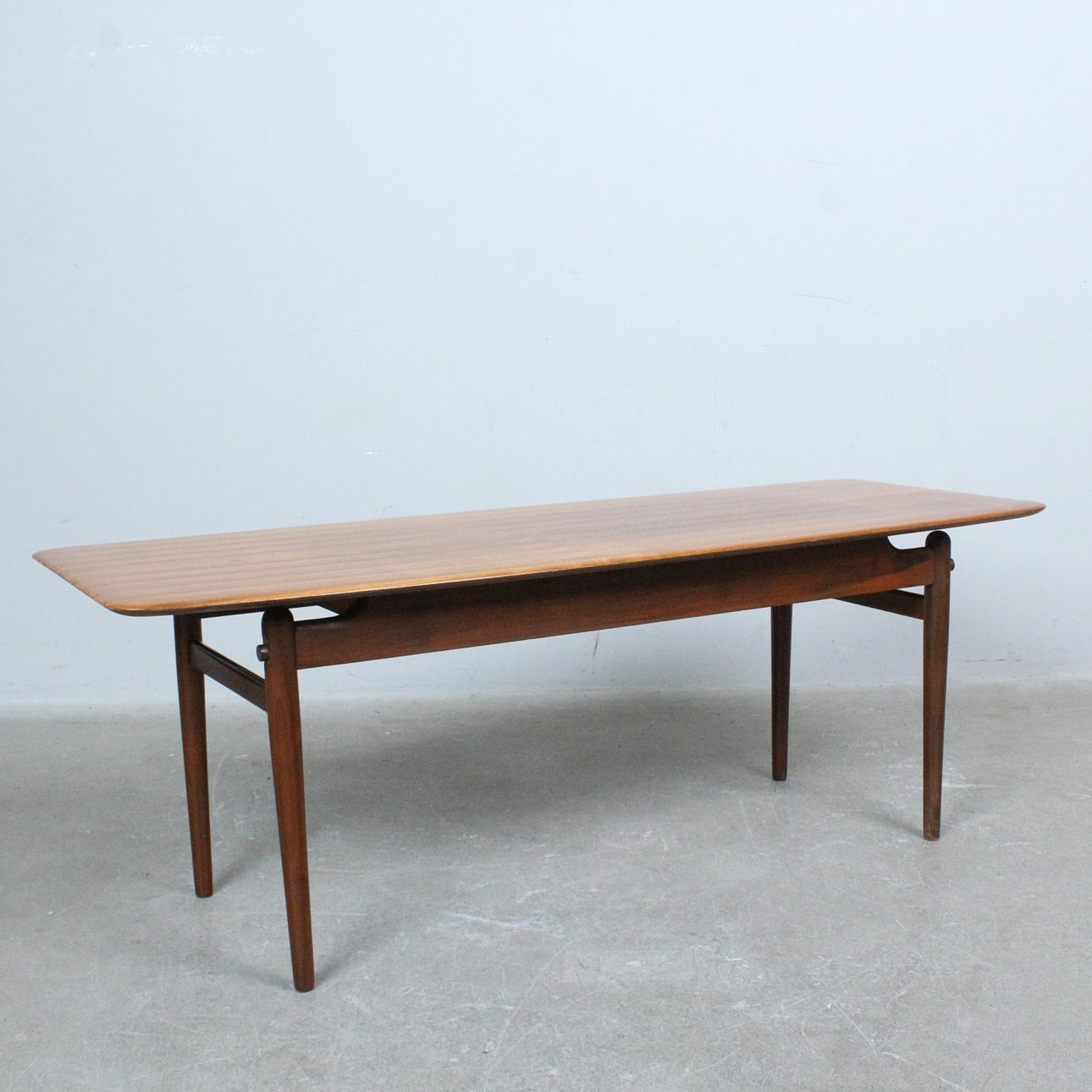 Danish coffee table in teak, 1970s. Constructed in glazed teak. Dimensions: H. 51 cm. W. 142.5 cm. D. 55 cm.