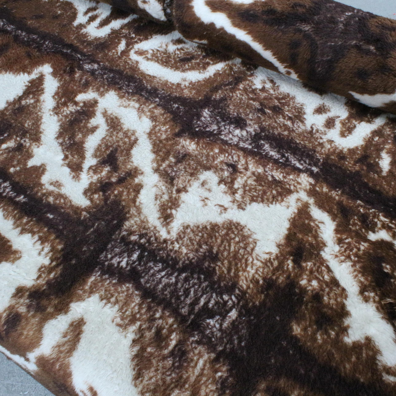 Large daybed/sofa in cowhide look from the 1970s. Foam filled seat Upholstered with synthetic leather and cowhide-look wool fabric. With cushions on