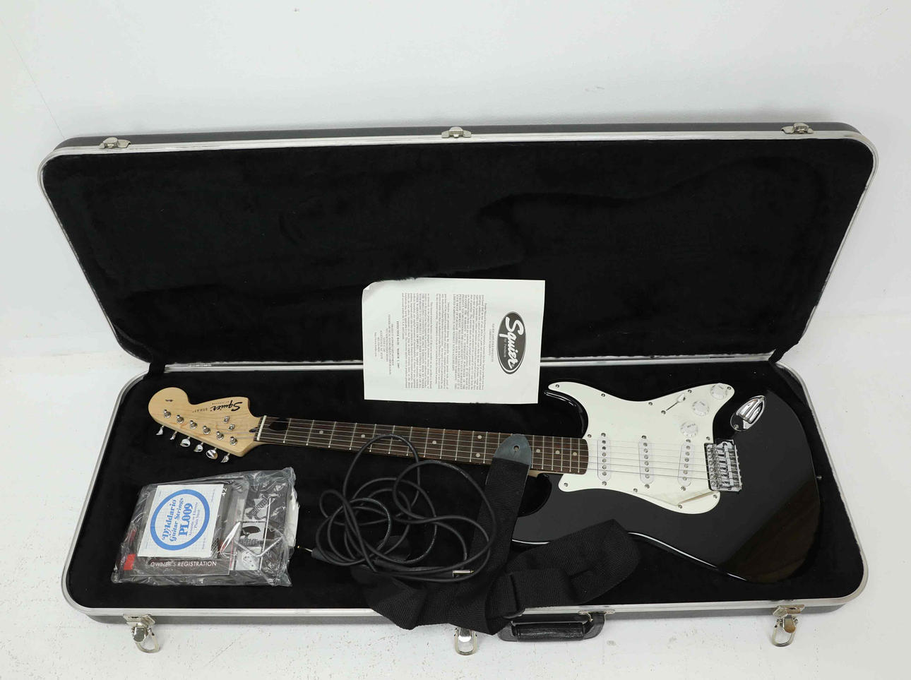 Electric guitar marked SN IC99098294, length 98 cm Hardcase accessories Automatic Guitar Tuner, Fender.