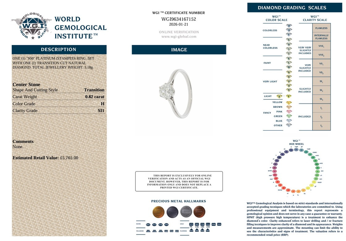 4963361. 0.82CT TRANSITIONAL CUT DIAMOND SOLITAIRE RING.