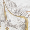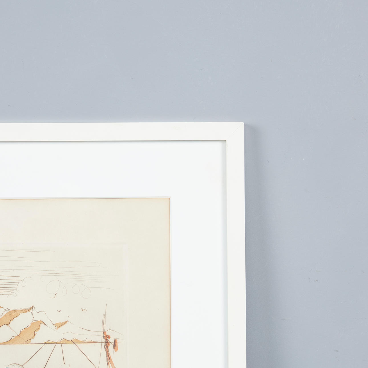 Framed under glass, mounted, darkened, light-edged, sheet minimally wavy.