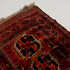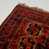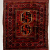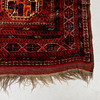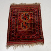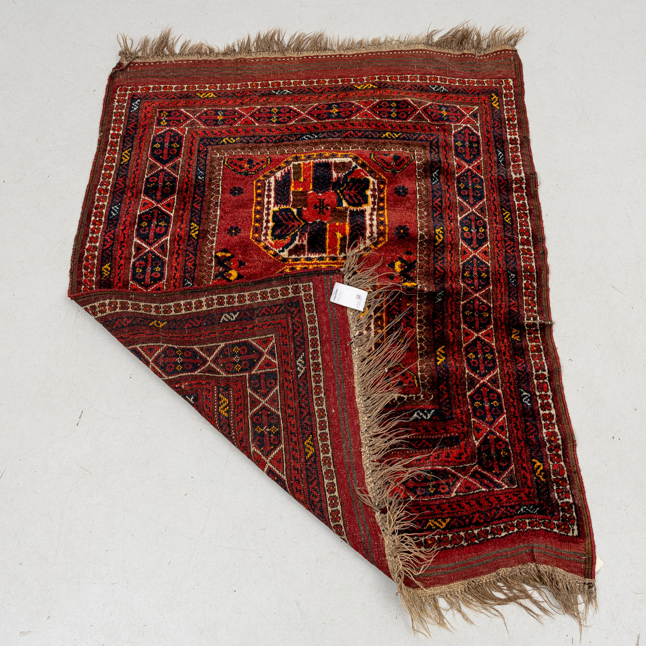 Red base with polychrome geometric pattern, 2 medallions, approx. 134x107 cm.