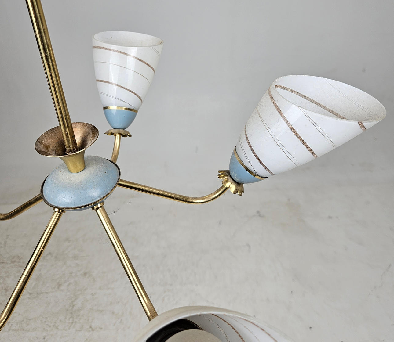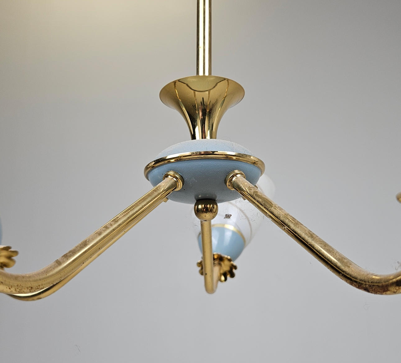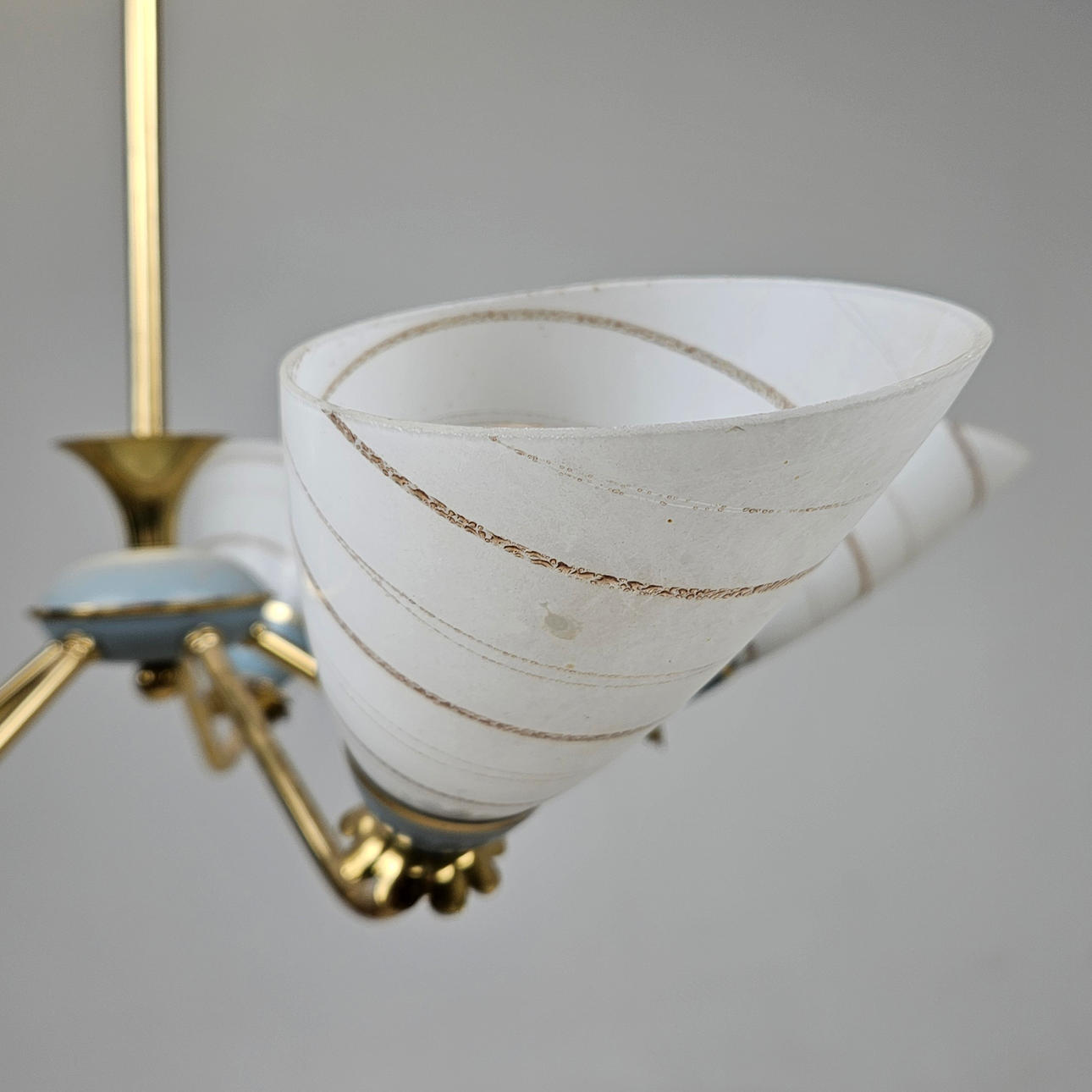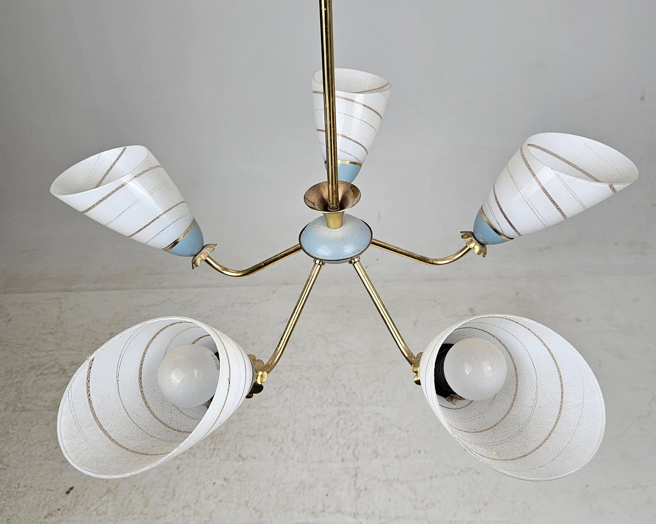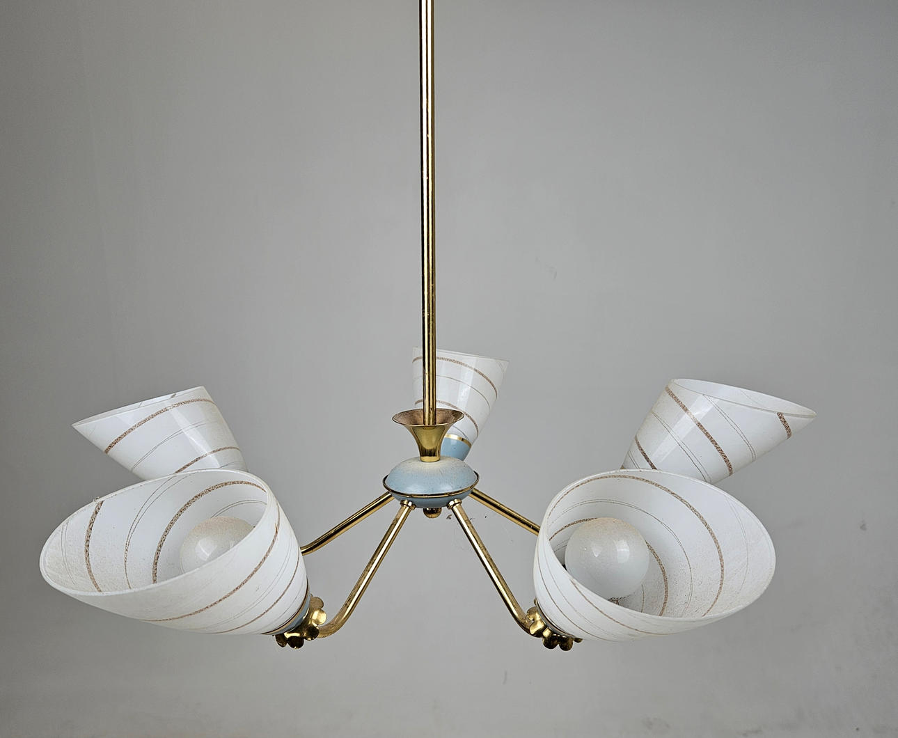 5 brass light arms with glass screens. Diameter approx. 56 cm.